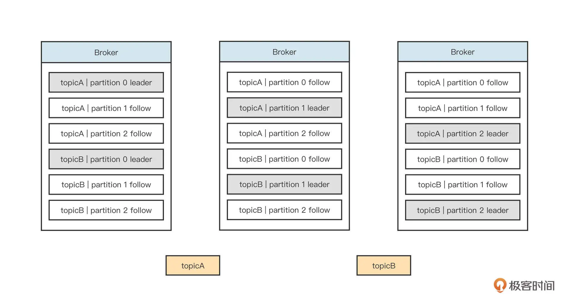 Leader 节点承担一个分区的读写,Follow 节点只负责数据备份。