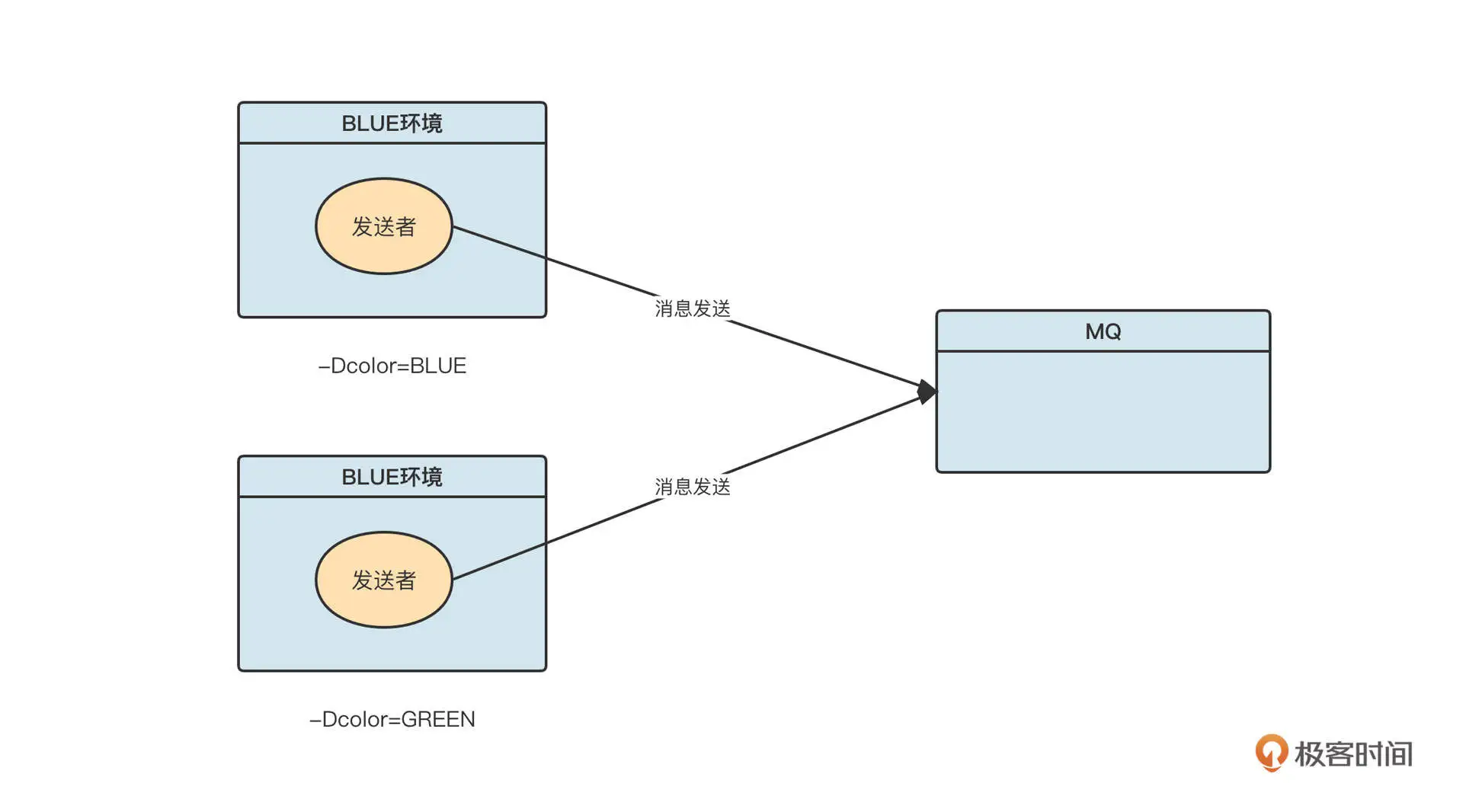 这么乍一看,蓝颜色的消费者消费 color=BLUE 的消息,绿颜色的消费者消费 color=GREEN 的消息,这不是很“完美”地解决了蓝绿发布的问题了吗?