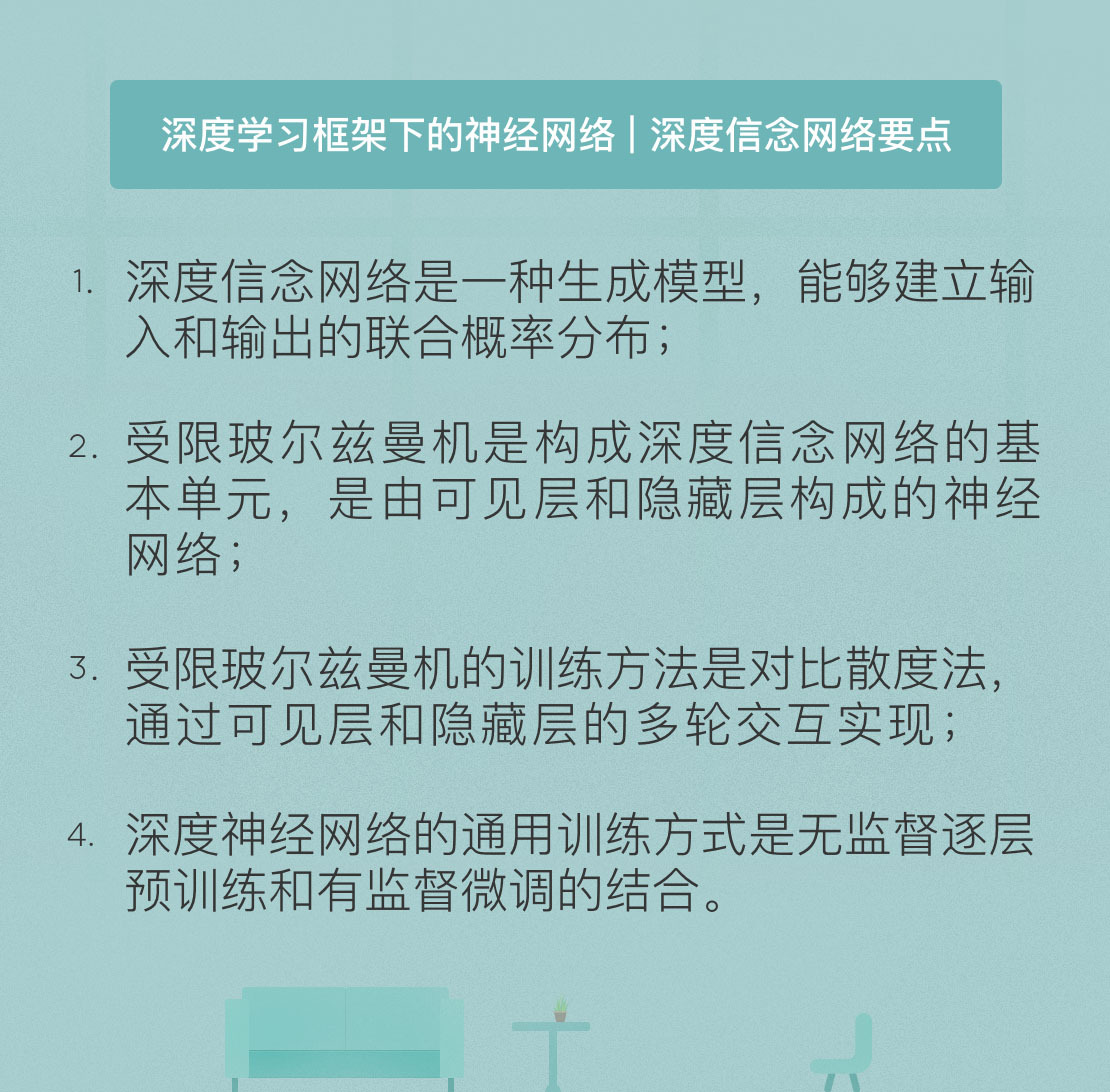 今天我和你分享了深度信念网络的基本概念和基本原理,其要点如下: