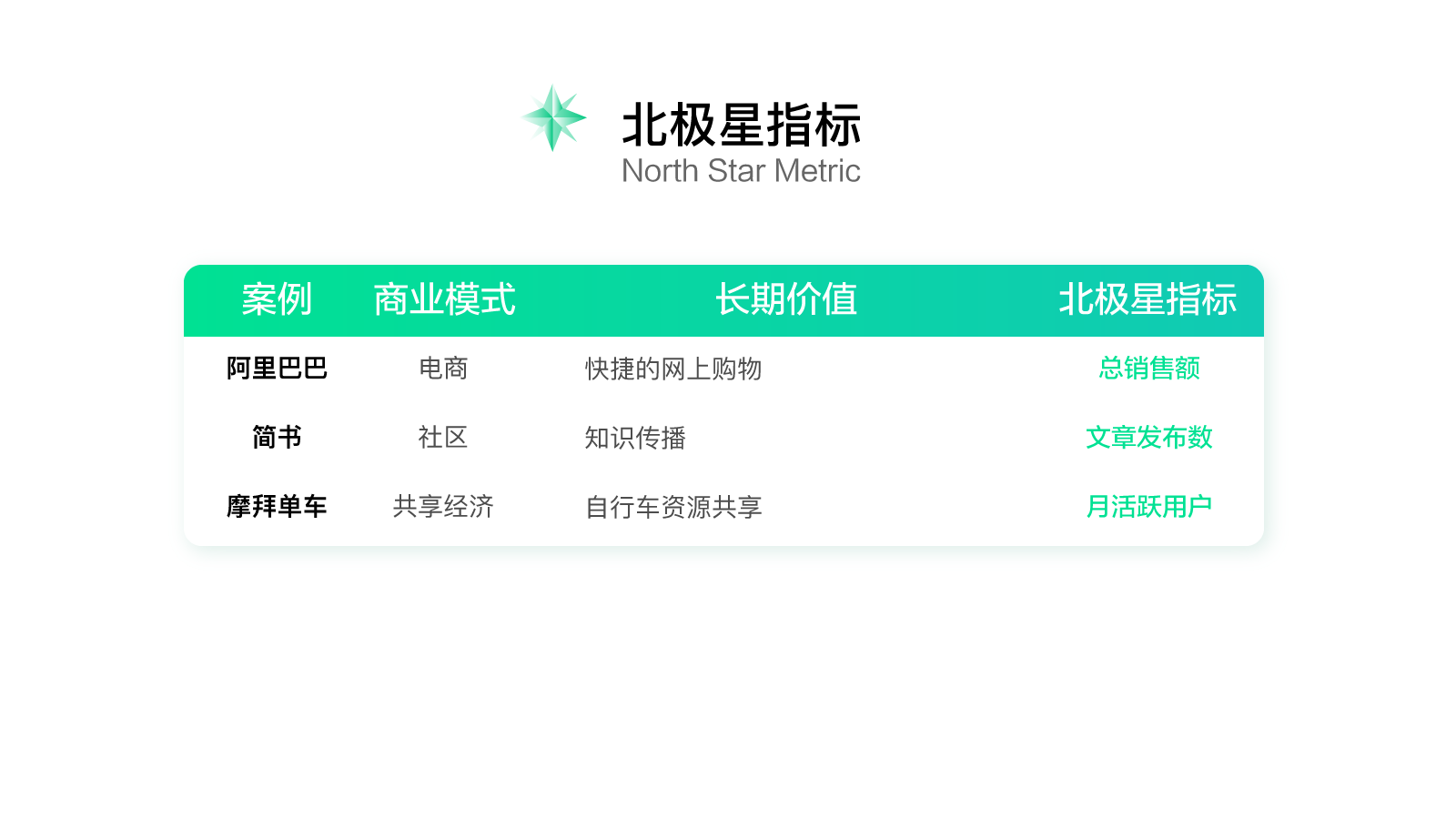 所以说,北极星指标其实就是对增长成果的衡量,并且为增长带来了明确的方向。