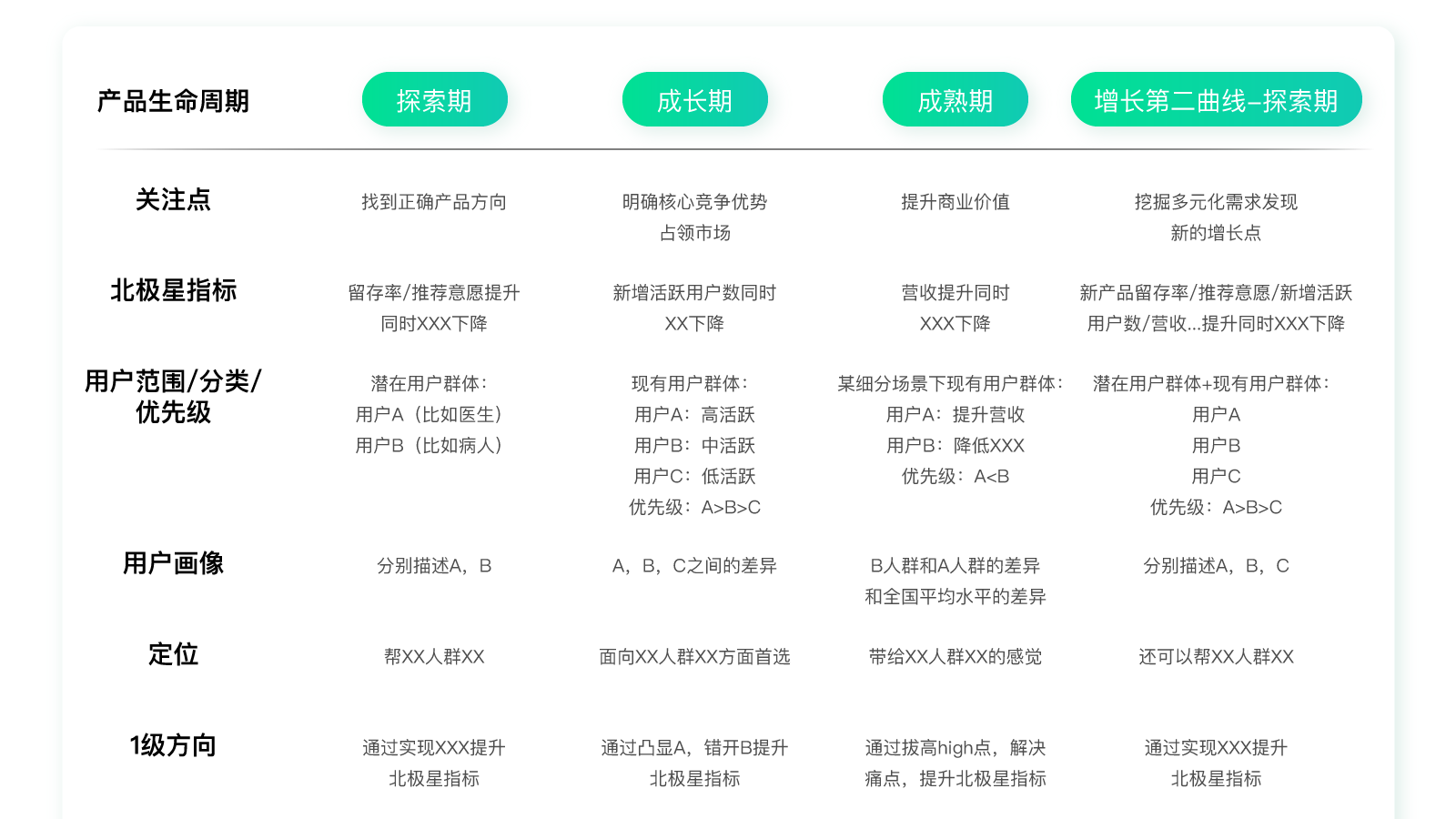 所以,根据产品的成长阶段,定位有可能会做适当调整。尤其是在产品从0到1的探索阶段,方向可能会非常多变,这个时候最需要的是“灵活”,而不是“固定”。