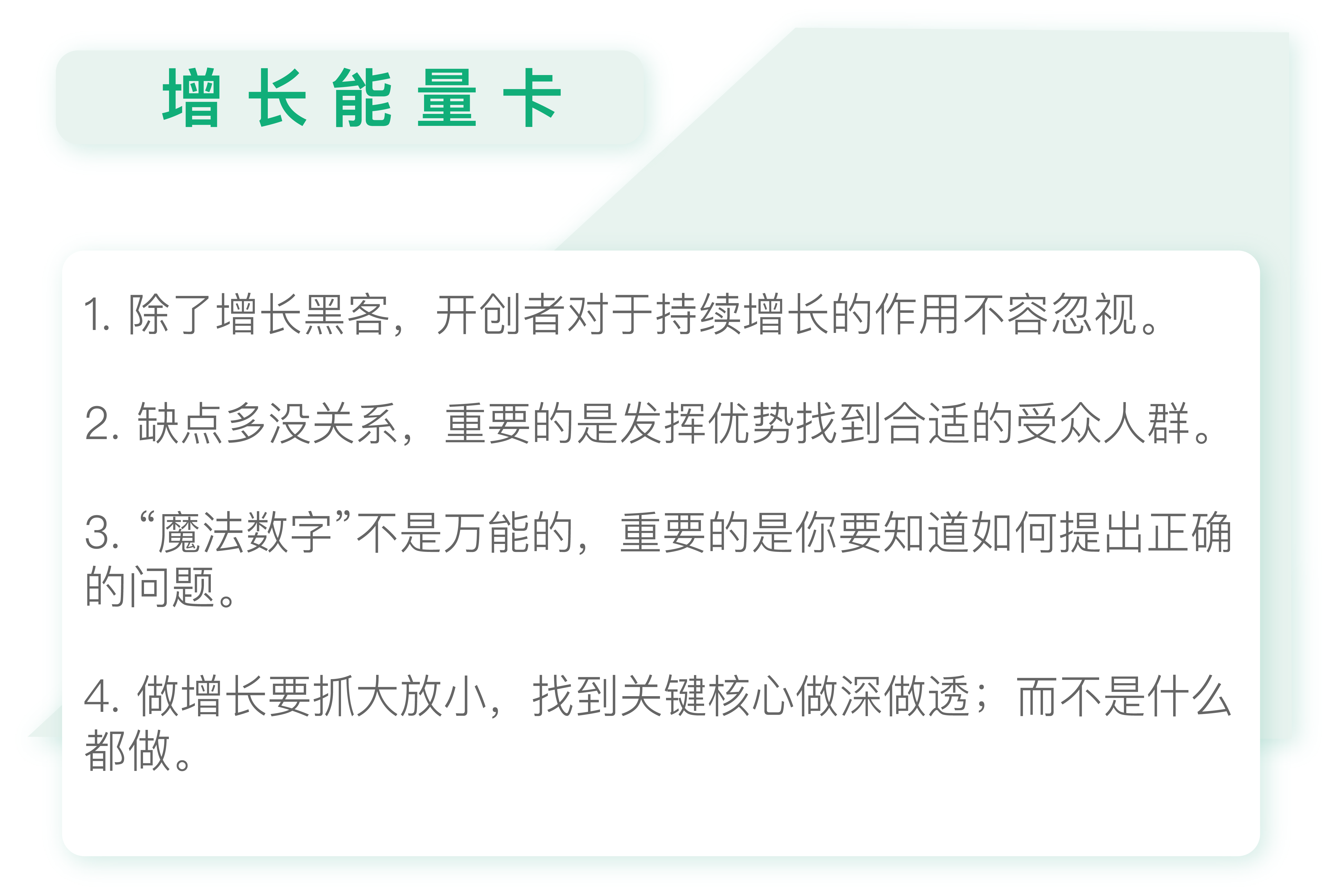 你也可以用这套方法去分析其它的增长案例,都没有问题。因为这是一套通用的、解决问题的、非常具体的思考框架,它可以用在任何产品上。它的目的就是解决大量增长案例背后缺乏具体的方法论基础、很难被复用的问题。