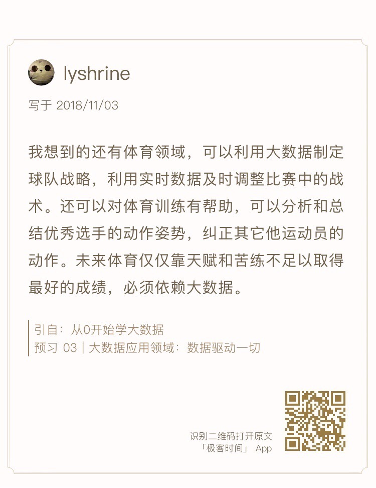 其实我是希望你在学习大数据的时候,不要仅局限在大数据技术这个领域,能够用更开阔的视野和角度去看待大数据、去理解大数据。这样一方面可以更好地学习大数据技术本身,另一方面也可以把以前的知识都融会贯通起来。
