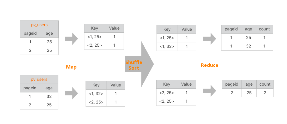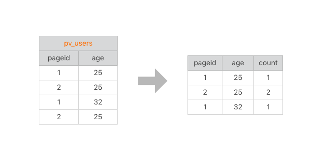 SELECT pageid, age, count(1) FROM pv_users GROUP BY pageid, age;