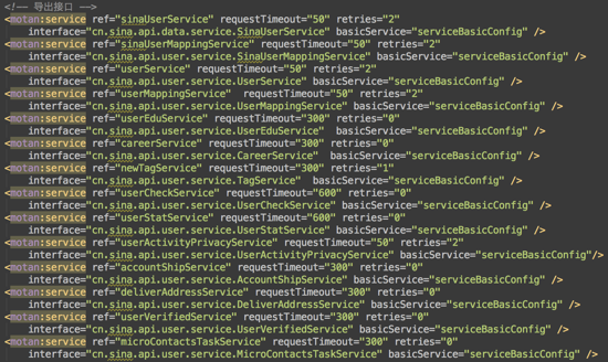 XML配置方式多用作RPC协议的服务描述,通过*.xml配置文件来定义接口名、参数以及返回值类型等。下面是一个XML配置方式的服务描述的例子。