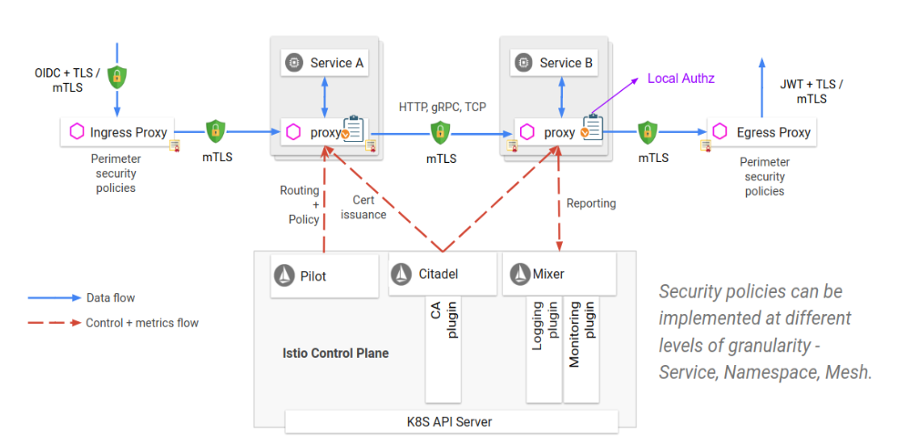 通过Pilot把授权策略和安全命名信息分发给Proxy。