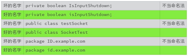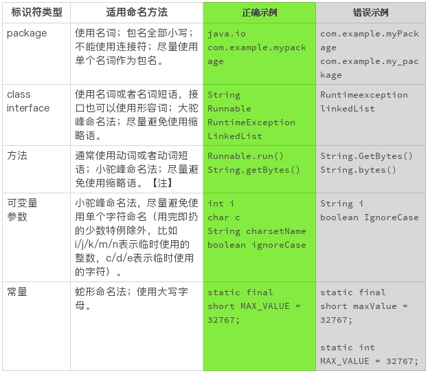 比如,Java的命名规范可以使用下表来表示。