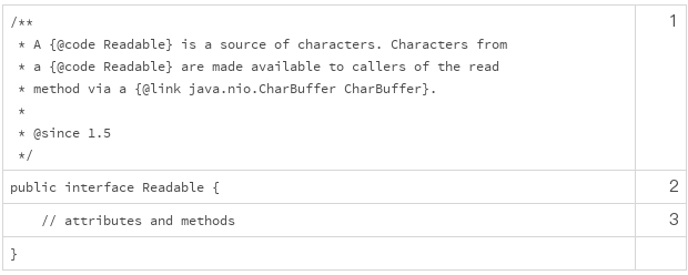 比如在上面的例子中,如果需要修改Readable,当看到“since 1.5”的标签时,我们就不需要检查Java 1.4的代码了。