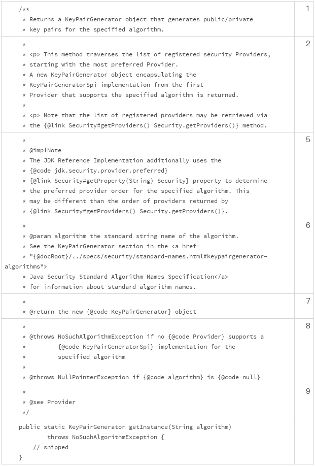 下面的这个例子,也是来自JDK的源代码。你可以清晰地看到,这段代码中的规范是非常典型的。