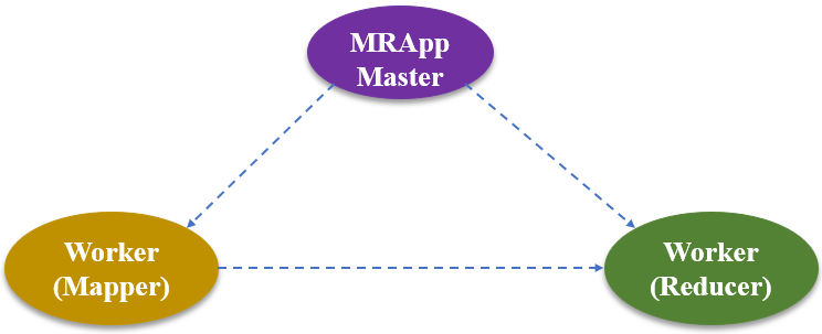 step2:MRAppMaster分别为Mapper和Reducer分配相应的Map和Reduce作业。Map作业的数量就是划分后的子任务数量,也就是3个;Reduce作业是2个。