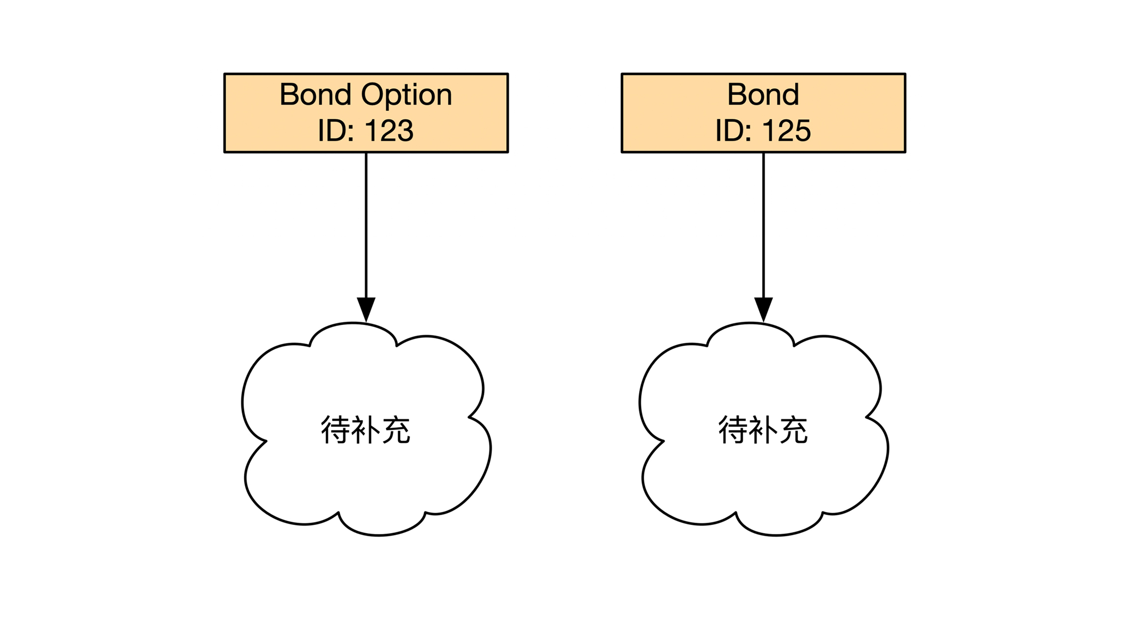 债券期权虽然是一个纯电子合同,但是它也有唯一标识。对开发人员来说,唯一标识符就是一串字符串,比如UUID。债券期权这个实体的示意图如下,图中“待补充”的内容后面我们会逐渐补全: