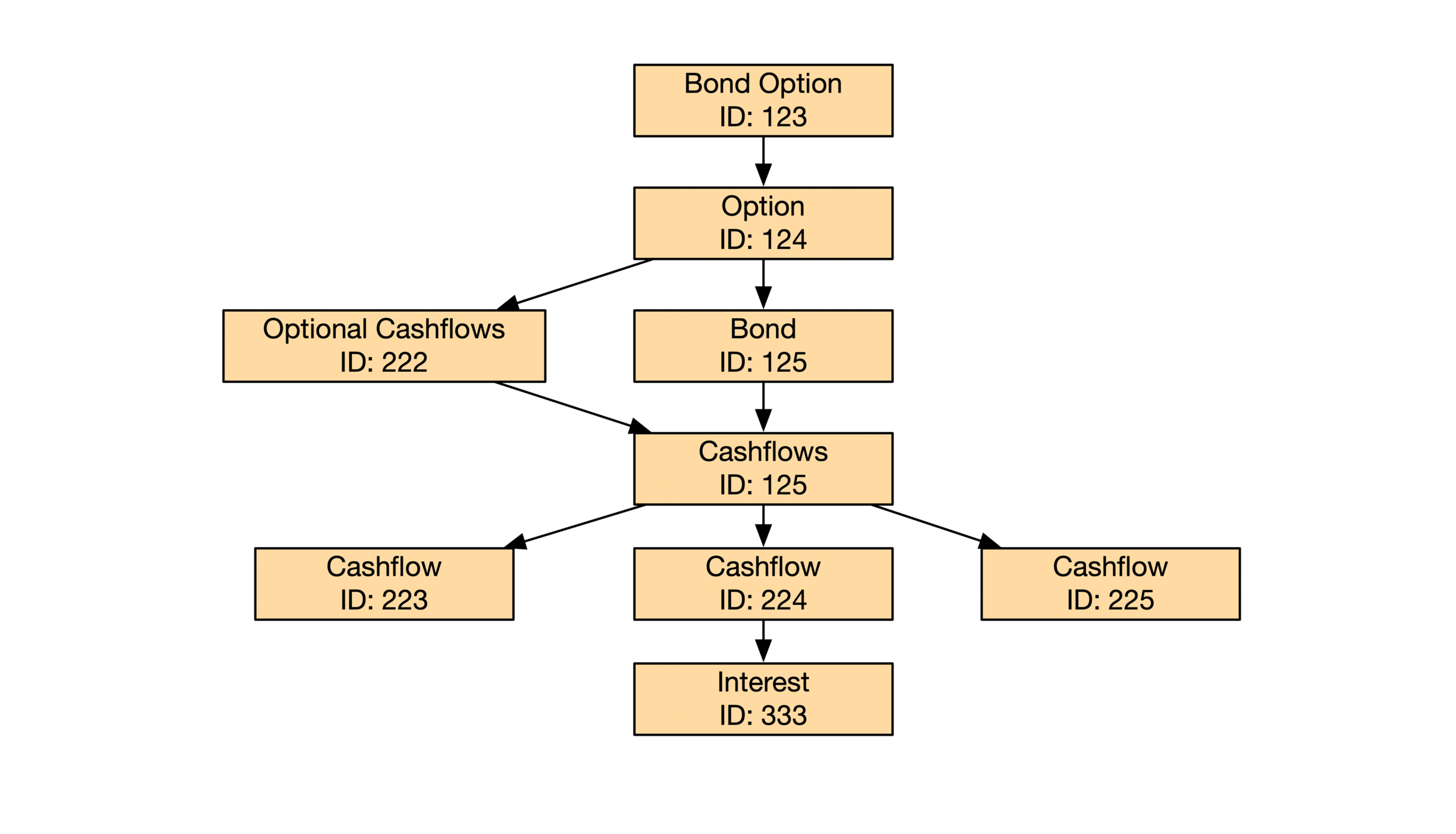 比如开头例子的债券期权(Bond Option),它就是一个聚合根。通过它可以访问到债券起源合同的其他内容。债券期权的聚合和聚合根示意图如下: