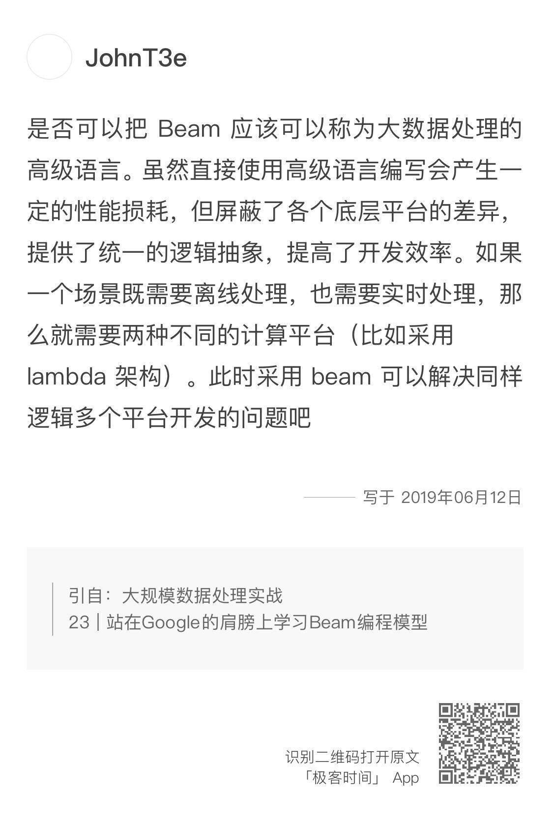 在第23讲中,JohnT3e也给出了他对Beam的理解。