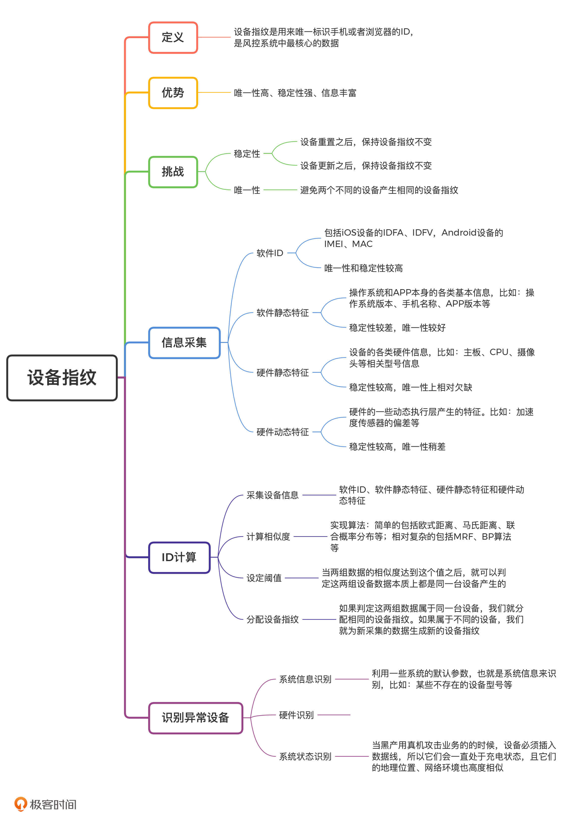 上面说的这两个挑战都属于设备指纹对稳定性的要求。最后,我们还要保证设备指纹的唯一性,避免两个不同的设备产生相同的设备指纹,比如,如何准确地区分同型号的设备,也是设备指纹需要满足的要求之一。所以,唯一性是避免误伤真实用户的关键维度。