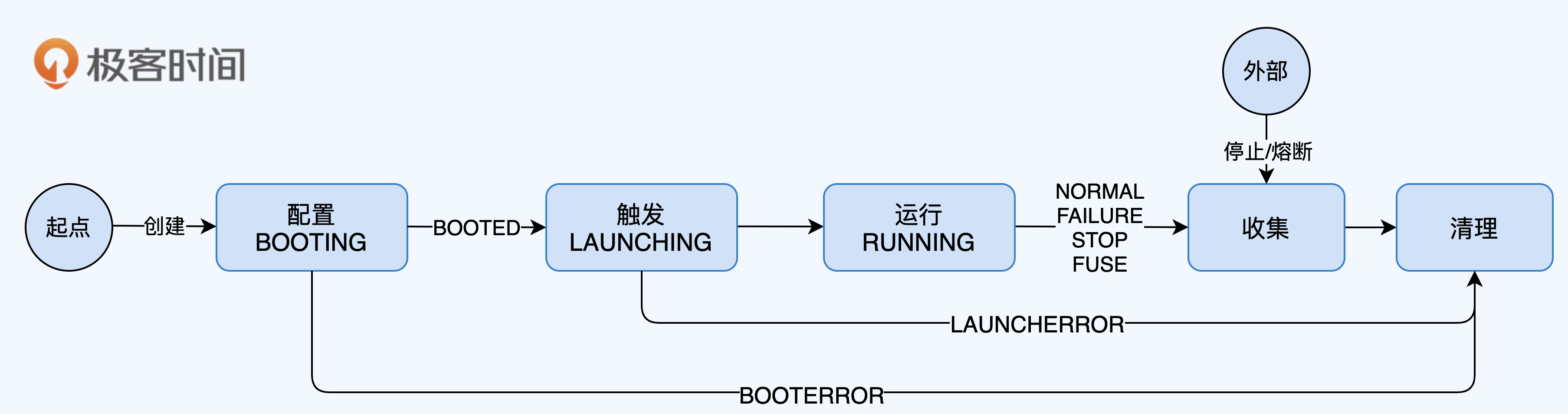 将这些状态变换的触发条件和转换过程绘制成状态流转图,就是下面这个样子。