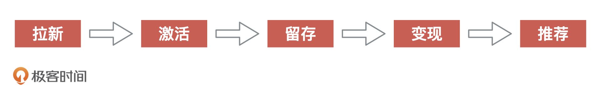 首先,我们来说说什么是用户增长理论。关于用户增长有一个著名的模型——AARRR,它是Acquisition、Activation、Retention、Revenue、Refer这5个单词的缩写,对应着用户生命周期中的5个重要环节,如下图所示。