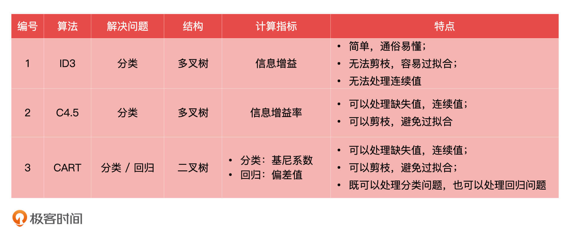 作为产品经理,我们简单了解这三种算法的特点就可以了,我在下面对它们进行了总结,你可以参考一下。
