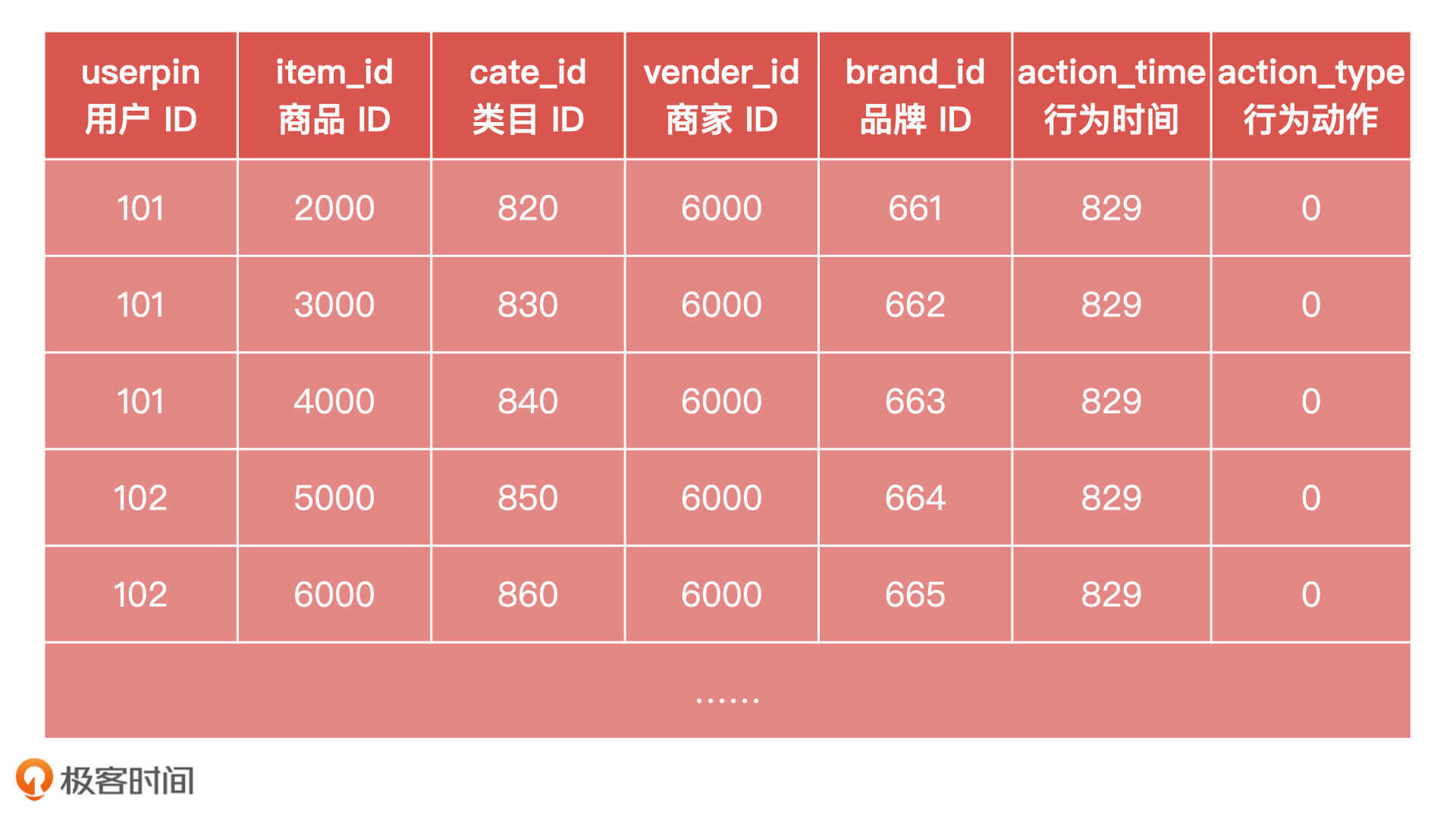 首先,我们来看用户行为日志样例表。