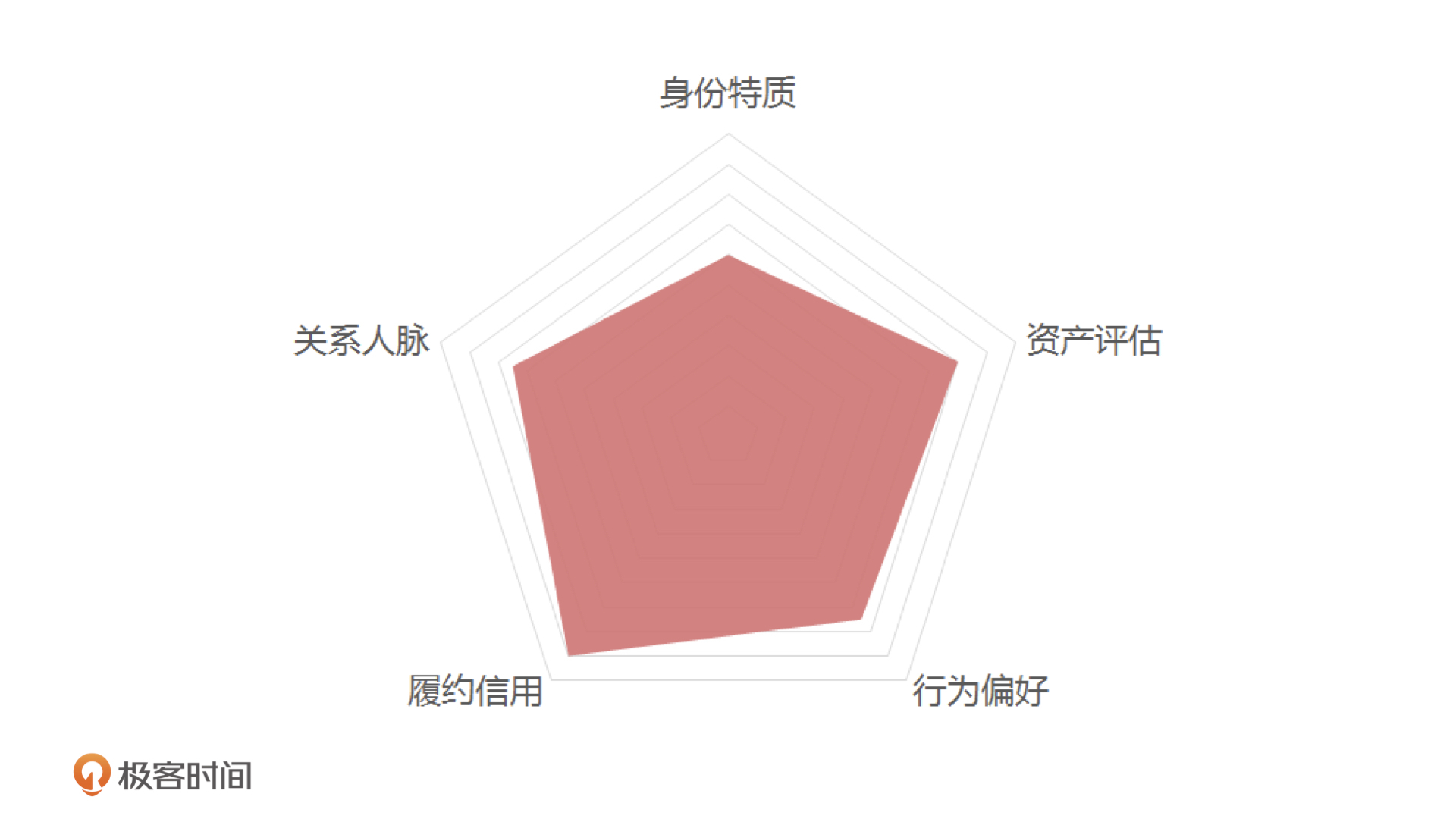 第一是身份特质,包括你的实名情况、社会属性、居住环境、教育情况,它们代表了你的出身、社会层次和稳定性,是一个人短时间内不会被改变的特质。