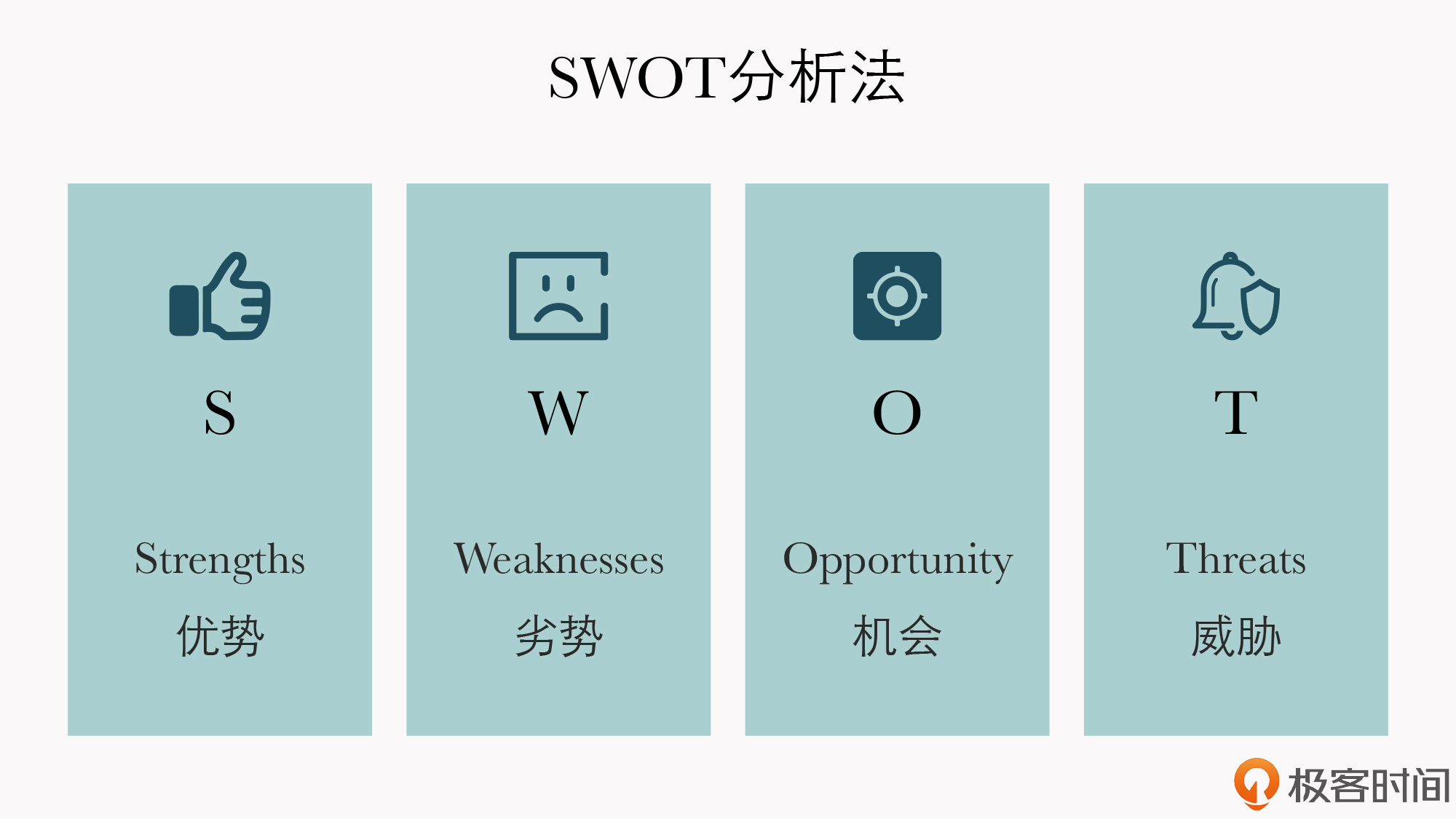 SWOT法经常被拿来做竞品分析、产品优劣分析等等,估计你也很熟悉,这里我就大概讲讲它是怎么应用的。