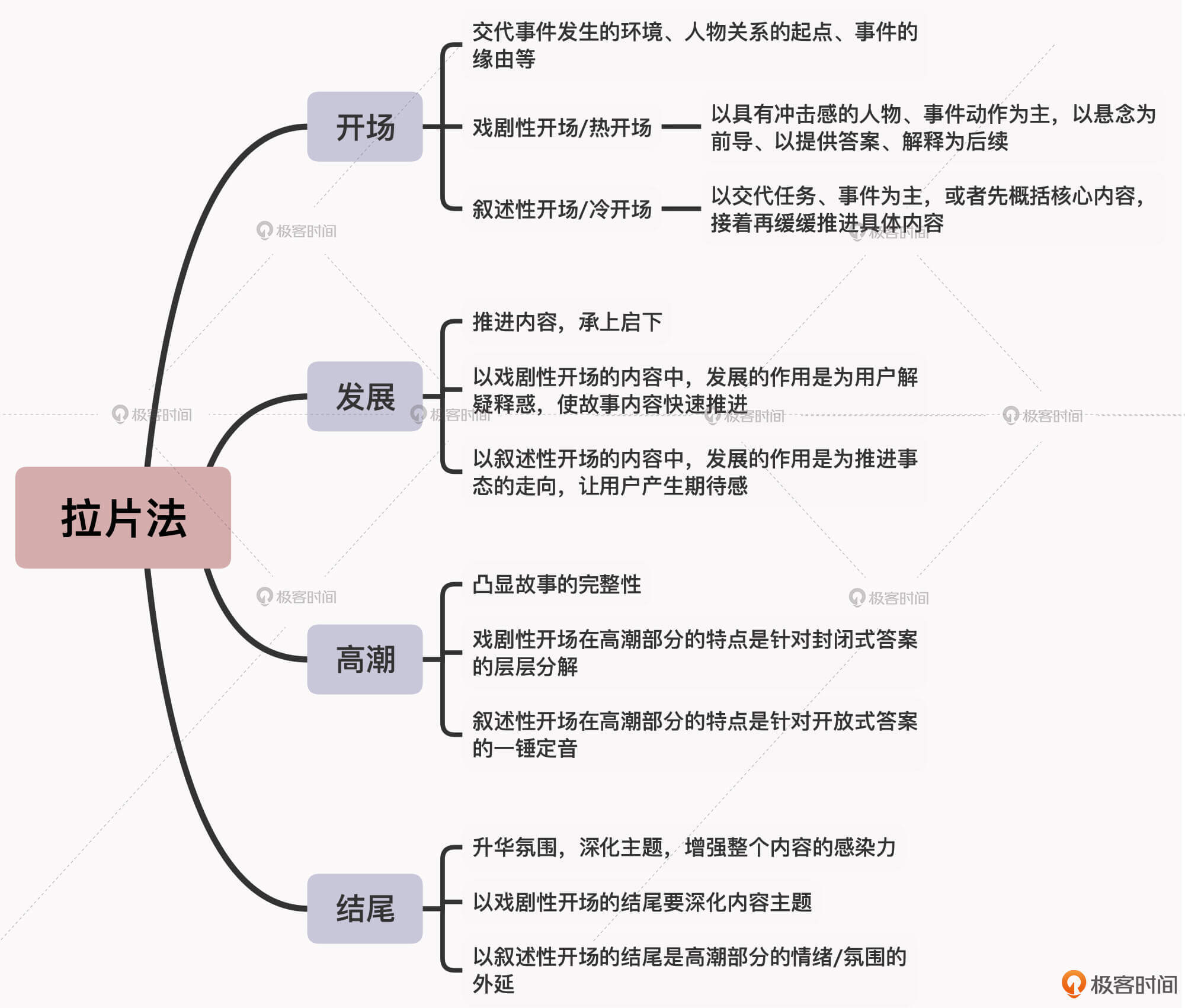 那么具体要怎么做呢?接下来,我就从短视频的内容结构出发,即开场、发展、高潮、结尾四个部分,来带你详细解析一下不同爆款短视频的内容运营特点。