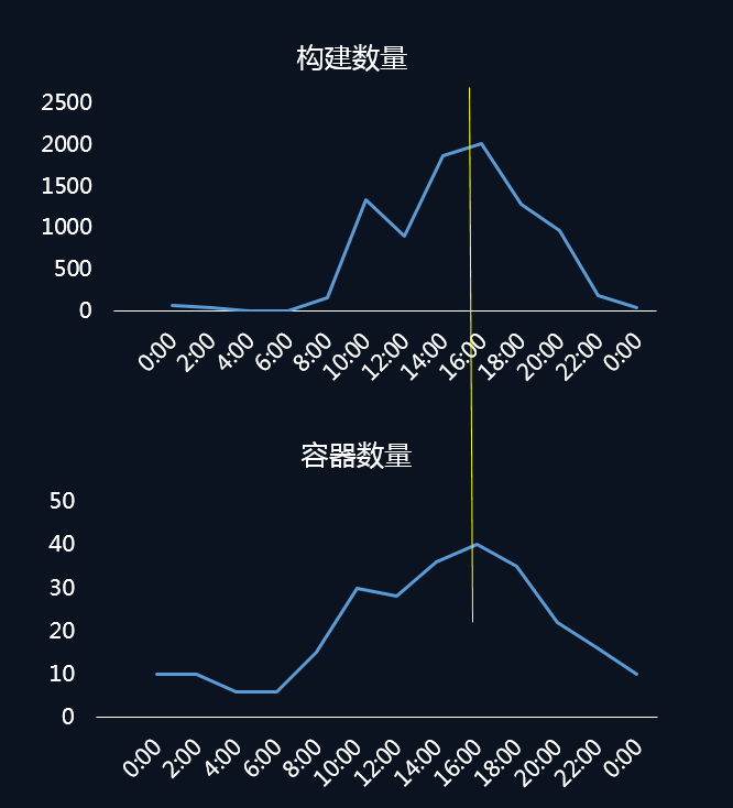 上图就是我们某台宿主机 24 小时的构建数量与所创建容器的对比图,可以看出两条曲线呈现的趋势基本是一致的。我们在夜晚闲置的资源上,调度了一些其他的离线 Job,大幅提升了资源利用率。
