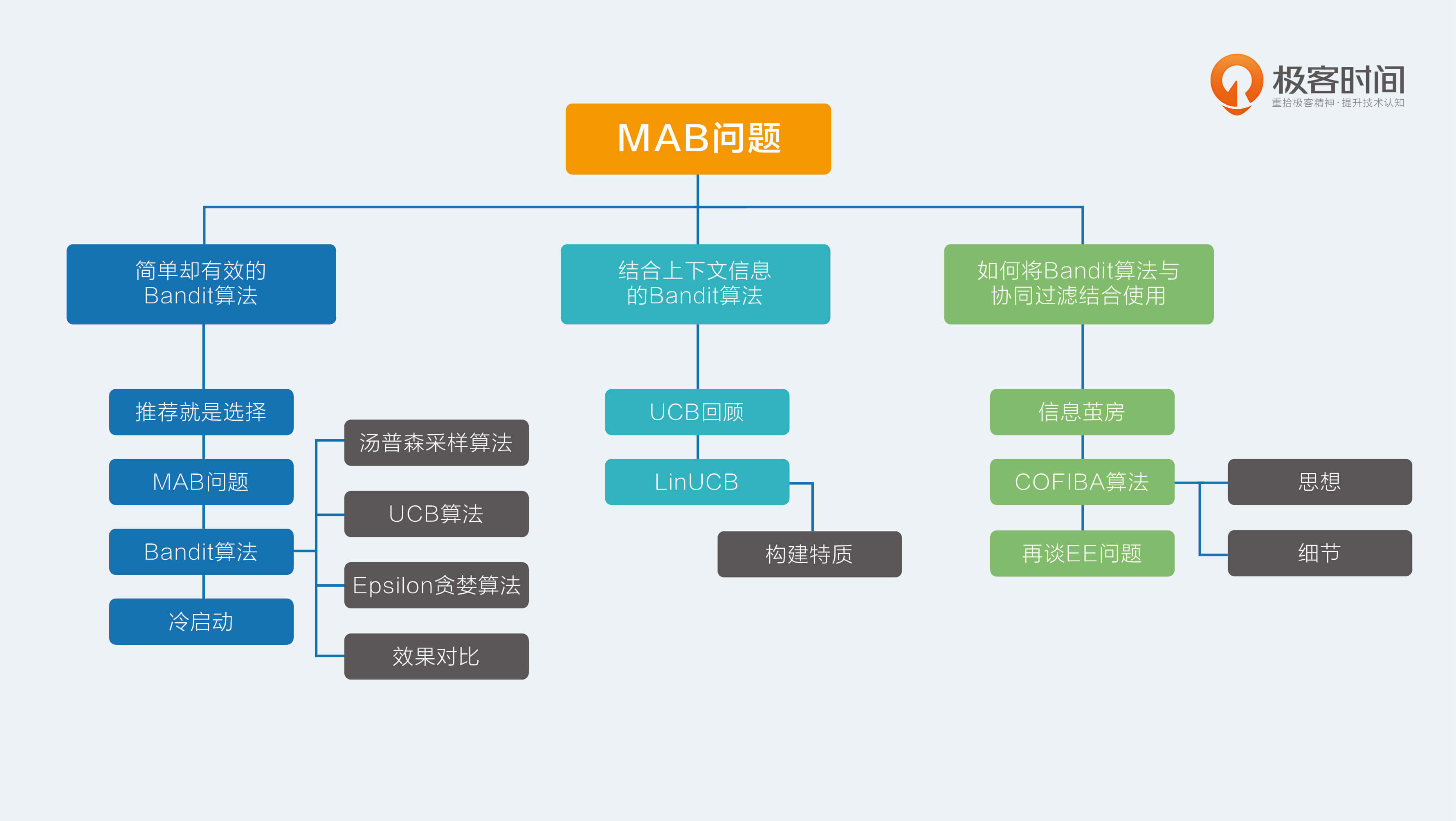 我已经和你聊了两篇关于Bandit算法的内容,我介绍过普通的Bandit算法,也介绍过加入特征信息的LinUCB算法,今天,我要介绍的是一个新方法,如何结合协同过滤的群体智慧,与Bandit的走一步看一步一起,让两种思想碰撞,也许可以让你的推荐系统与众不同。