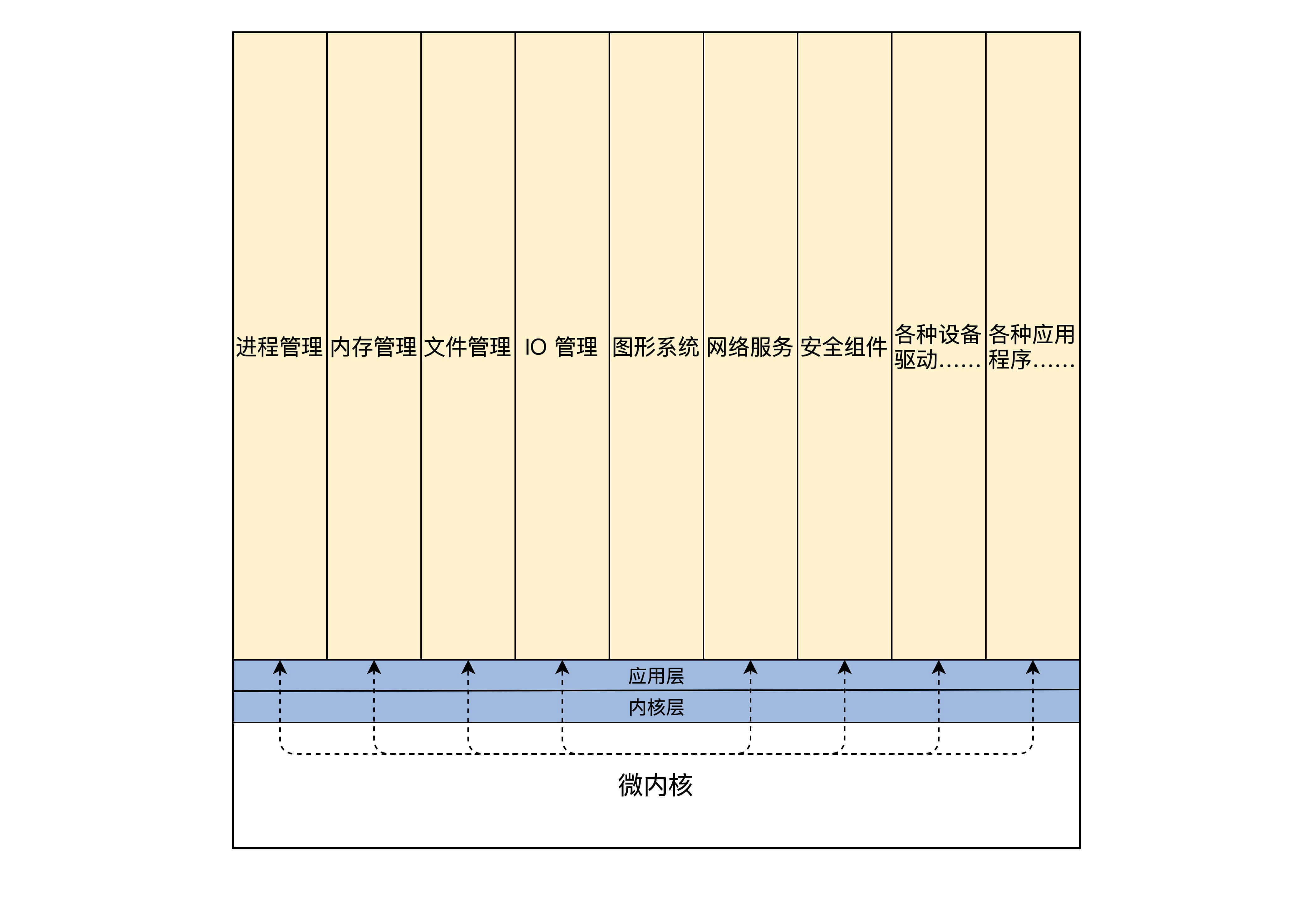 为了方便我们了解不同内核架构间的优缺点,下面我们看一个和宏内核结构对应的反例。