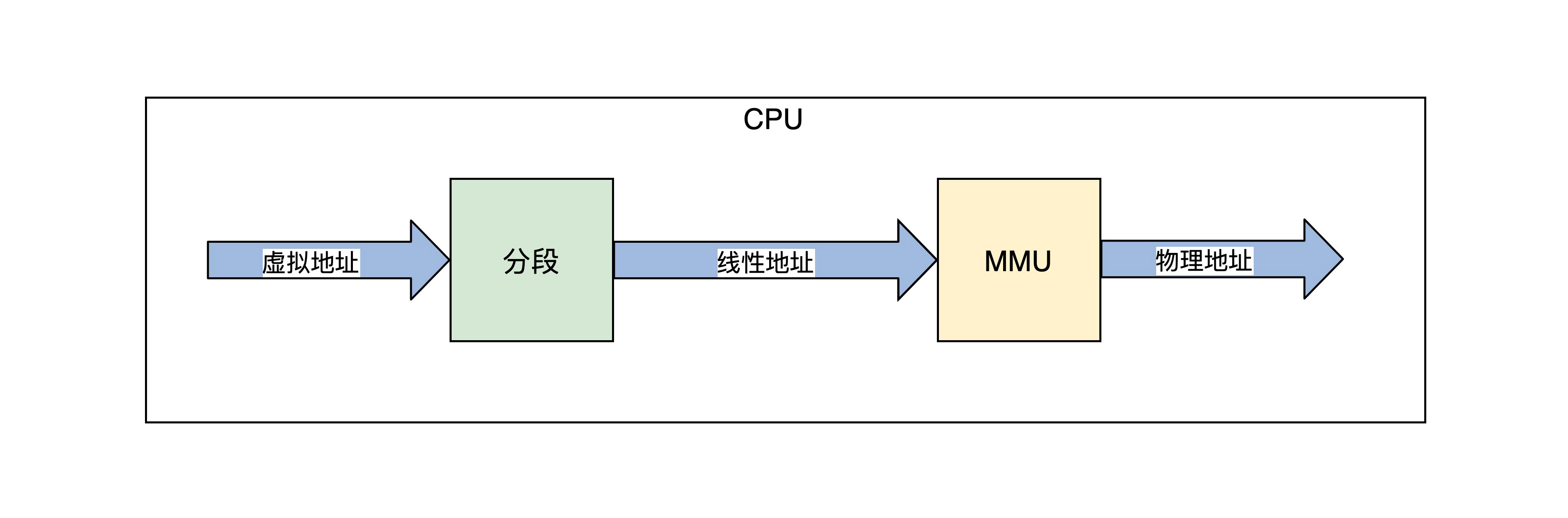上图中,程序代码中的虚拟地址,经过CPU的分段机制产生了线性地址,平坦模式和长模式下线性地址和虚拟地址是相等的。