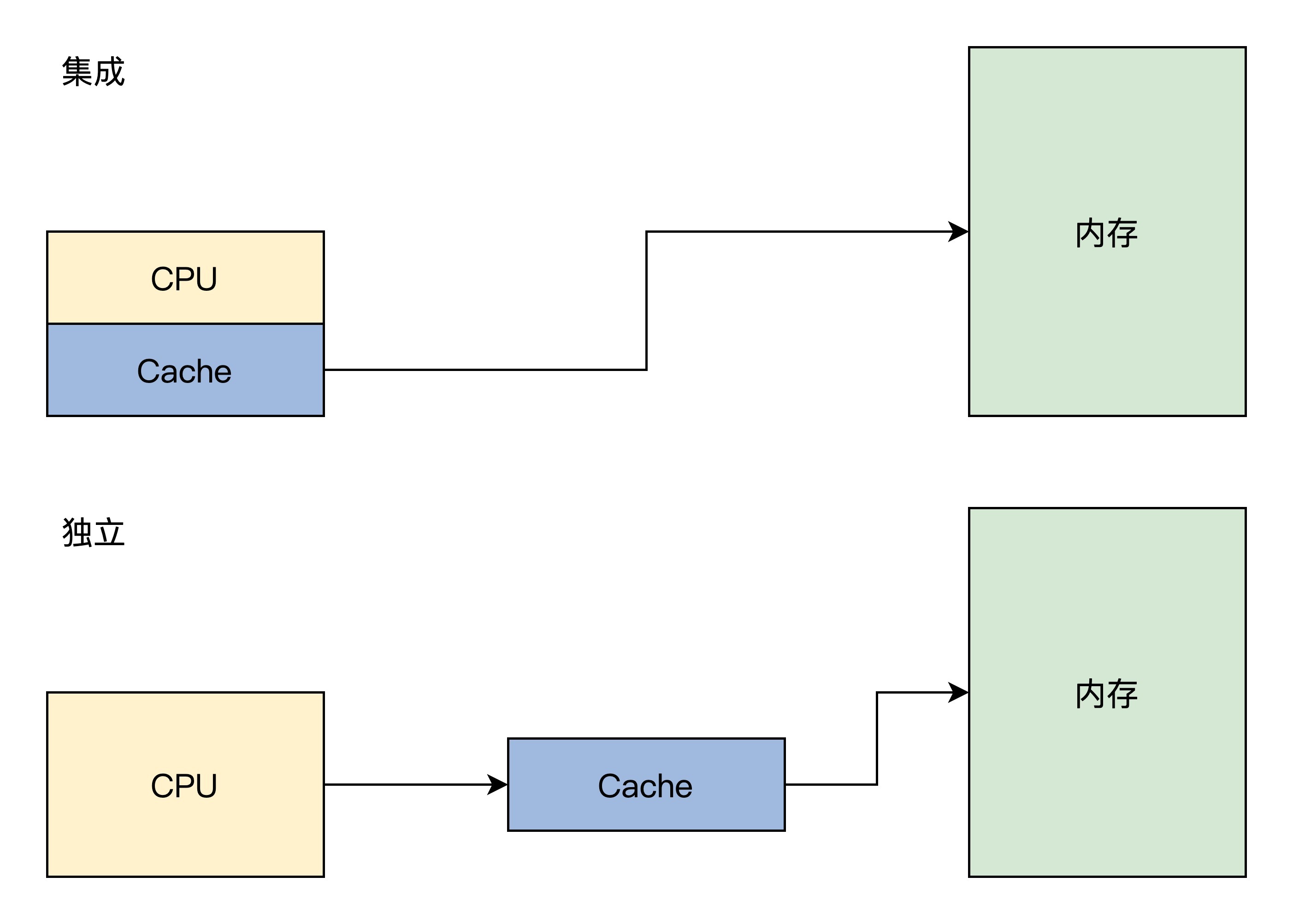 Cache可以集成在CPU内部,也可以做成独立的芯片放在总线上,现在x86 CPU和ARM CPU都是集成在CPU内部的。其逻辑结构如下图所示。