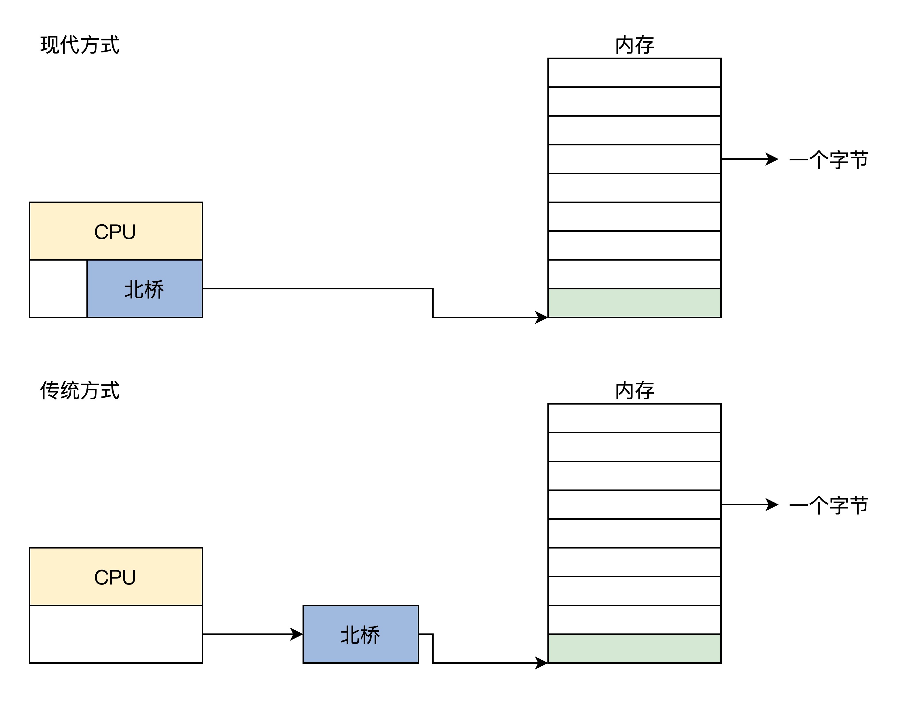 结合图片我们看到,控制内存刷新和内存读写的是内存控制器,而内存控制器集成在北桥芯片中。传统方式下,北桥芯片存在于系统主板上,而现在由于芯片制造工艺的升级,芯片集成度越来越高,所以北桥芯片被就集成到CPU芯片中了,同时这也大大提升了CPU访问内存的性能。