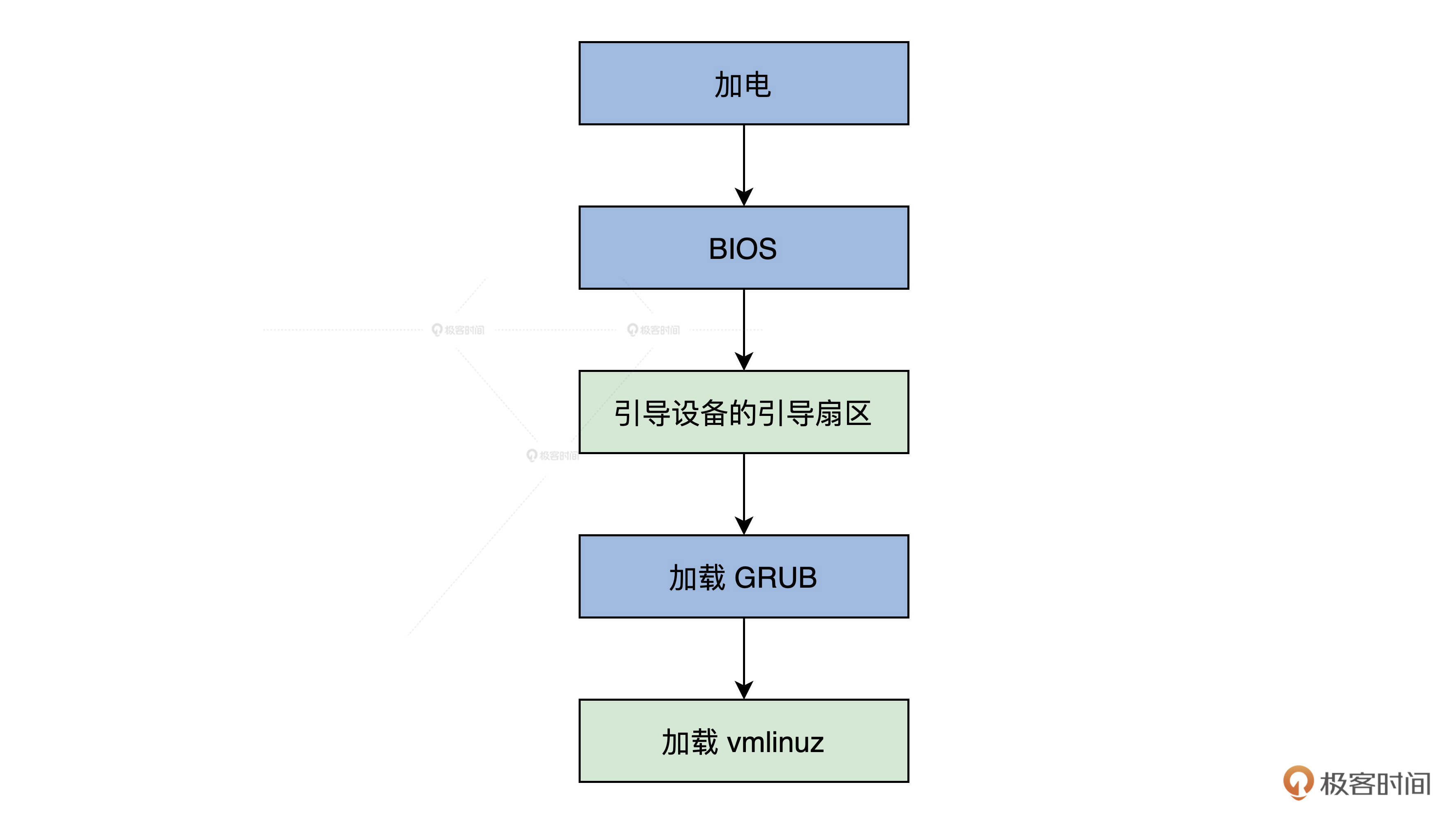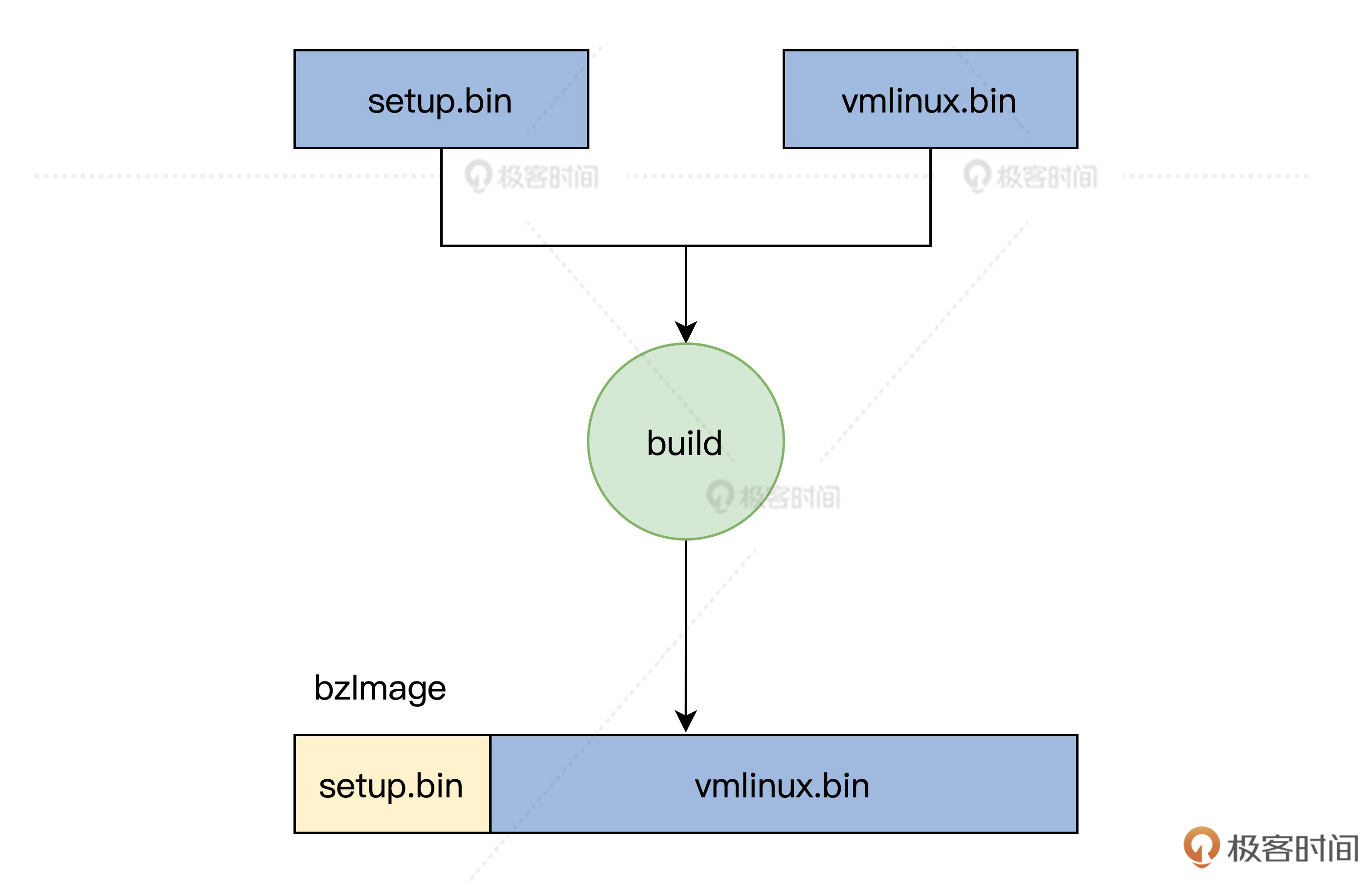 这节课,我会先为你梳理启动的整体流程,重点为你解读Linux上GRUB是怎样启动,以及内核里的“实权人物”——vmlinuz内核文件是如何产生和运转的。下节课,我们从setup.bin文件的_start函数入手,研究Linux初始化流程。
