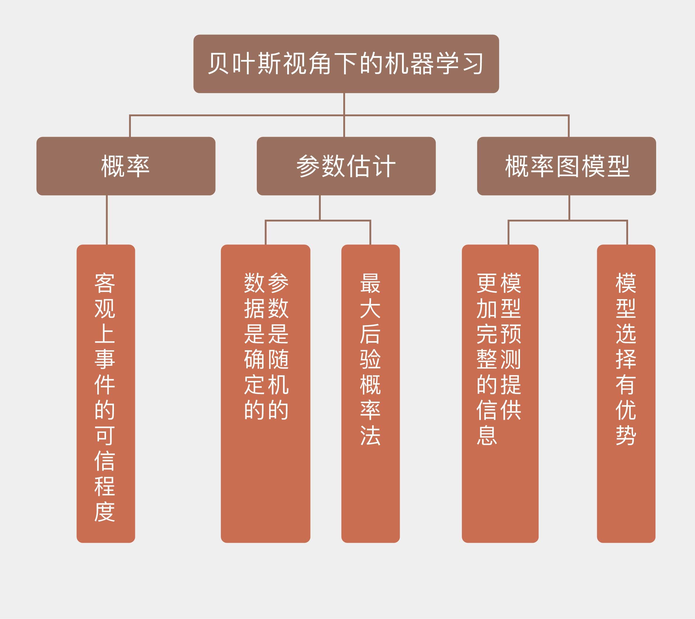将贝叶斯定理应用到机器学习之中,完成模型预测和选择的任务,就是贝叶斯视角下的机器学习。由于贝叶斯定理大量涉及各种显式变量与隐藏变量的依赖关系,通常用概率图模型来直观地描述。贝叶斯主义将未知参数视为随机变量,参数在学习之前的不确定性由先验概率描述,学习之后的不确定性则由后验概率描述,这中间不确定性的消除就是机器学习的作用。