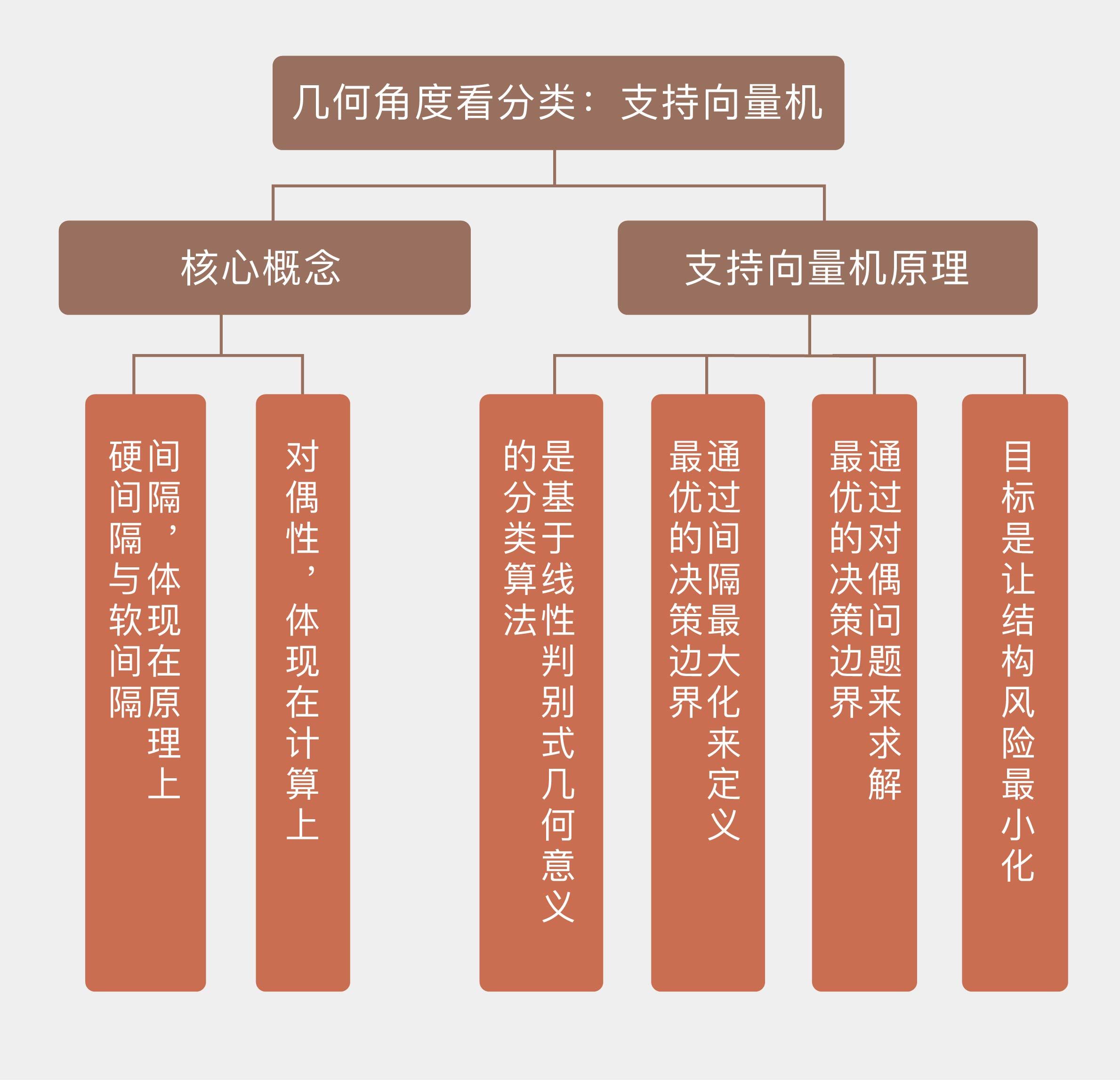 今天我和你分享了支持向量机的概念与原理,着重从几何意义上解释了算法的来龙去脉,其要点如下: