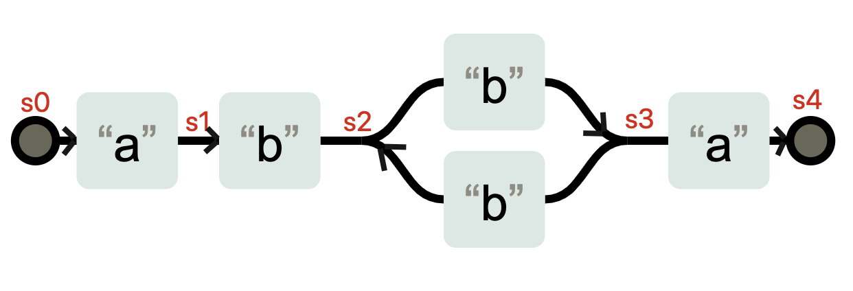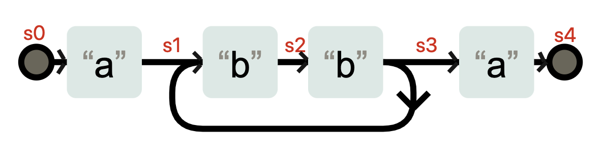 在状态 s3 时,不需要输入任何字符,状态也有可能转换成 s1。你可以理解成 a(bb)+a 在匹配了字符 abb 之后,到底在 s3 状态,还是在 s1 状态,这是不确定的。这种状态机就是非确定性有穷状态自动机(Non-deterministic finite automaton 简称NFA)。