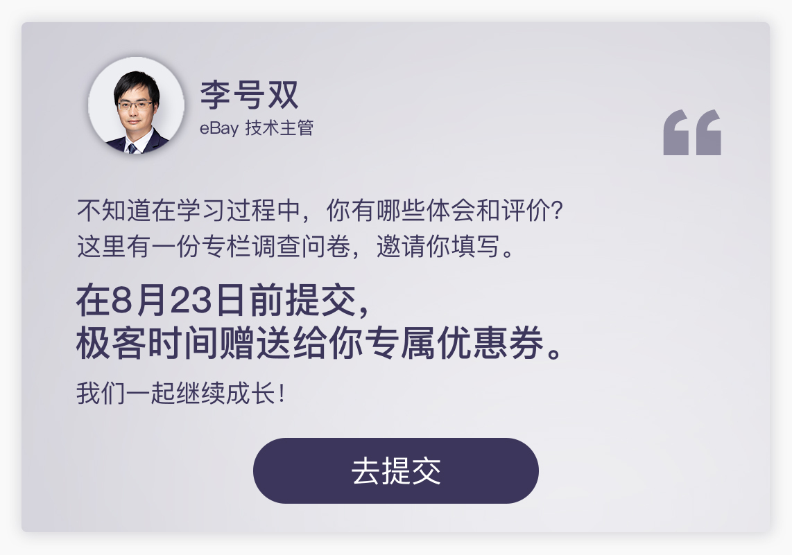 不知不觉,我从Tomcat和Jetty的学习谈到了如何优雅地设计一个复杂的系统。由点及面,你可以把Tomcat和Jetty当作一个支点,从我们身边“熟悉又陌生”的Tomcat和Jetty入手,不光掌握它们的使用,更能从它们的源码中汲取经验,提升自己的系统设计能力。学习这件事千万不能浮躁,很难做到一口吃成大胖子,最重要的是需要静下心慢慢体会和思考。我看到不少同学的留言,从提问的内容我能感受到你们的好奇心和思考,有些问题我也还要去查阅源码才能回答上来,在这个过程中我自己也主动或被动的学到不少东西,所以说多和同行们交流也非常有必要。