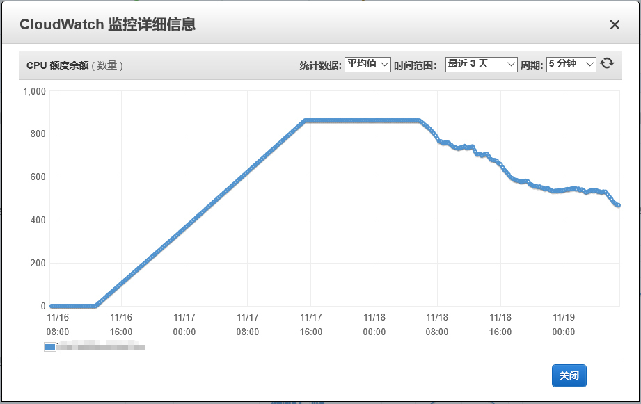 AWS突增性能类型的CPU积分曲线示例