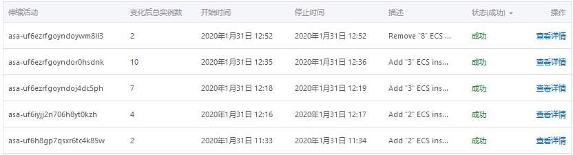 伸缩活动历史记录