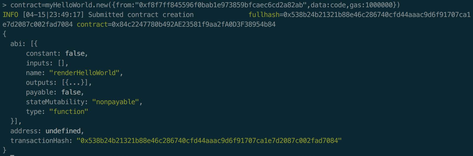 >myHelloWorld=eth.contract(abi)