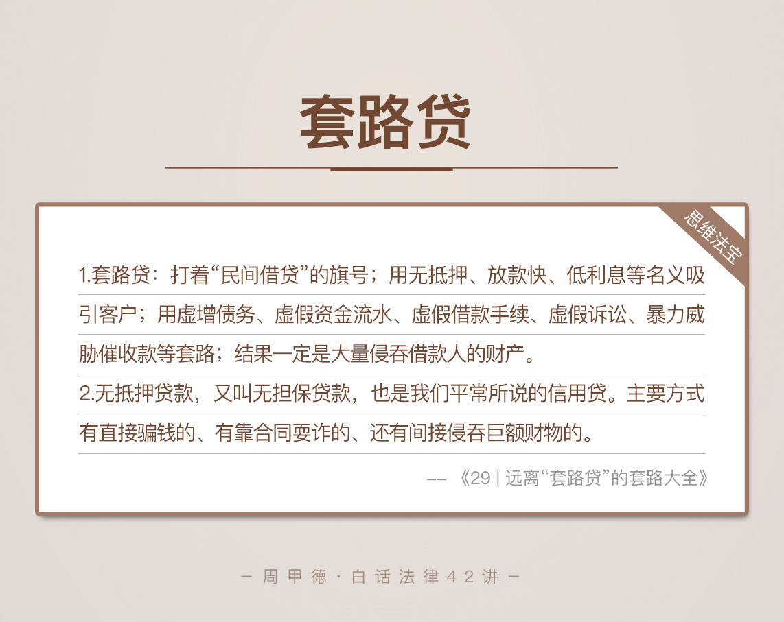 今天的内容主要是这些。套路贷,你还听说过什么奇葩的套路或者经历吗?欢迎留言和我分享,也欢迎你把这篇文章分享给亲人朋友。不贪、不慌、不马虎,其实是应对套路贷最好的套路。