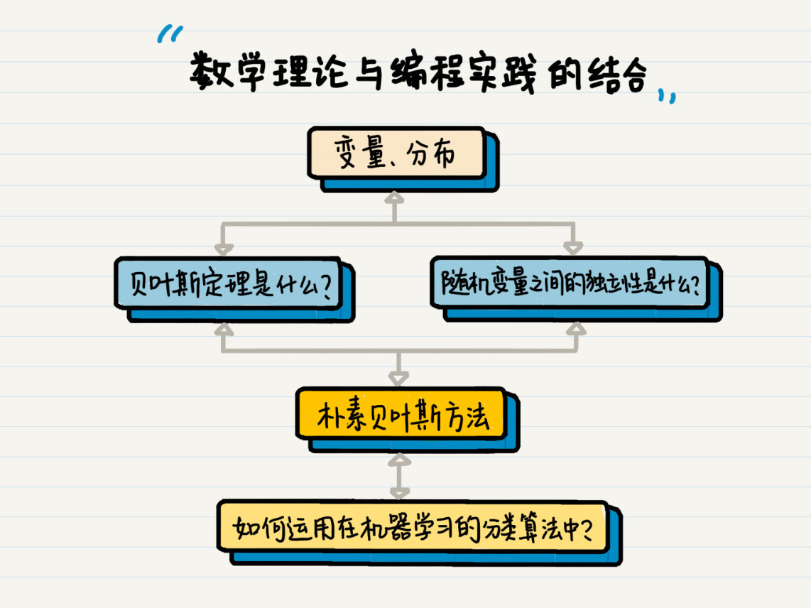 比如,对于朴素贝叶斯方法,我会从基本的随机现象、随机变量和概率分布等着手。随后,我会逐步深入,结合这些数学知识在编程算法中的应用进行展开。比方说,贝叶斯定理是什么,随机变量之间的独立性是什么,这些是如何构成朴素贝叶斯方法的,而最终朴素贝叶斯又是如何被运用在机器学习的分类算法之中的。