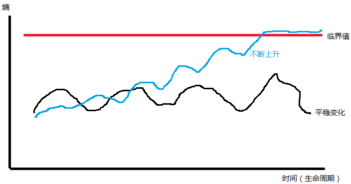 这里我用一个图展示软件系统“熵”值的生命周期变化,如下:-