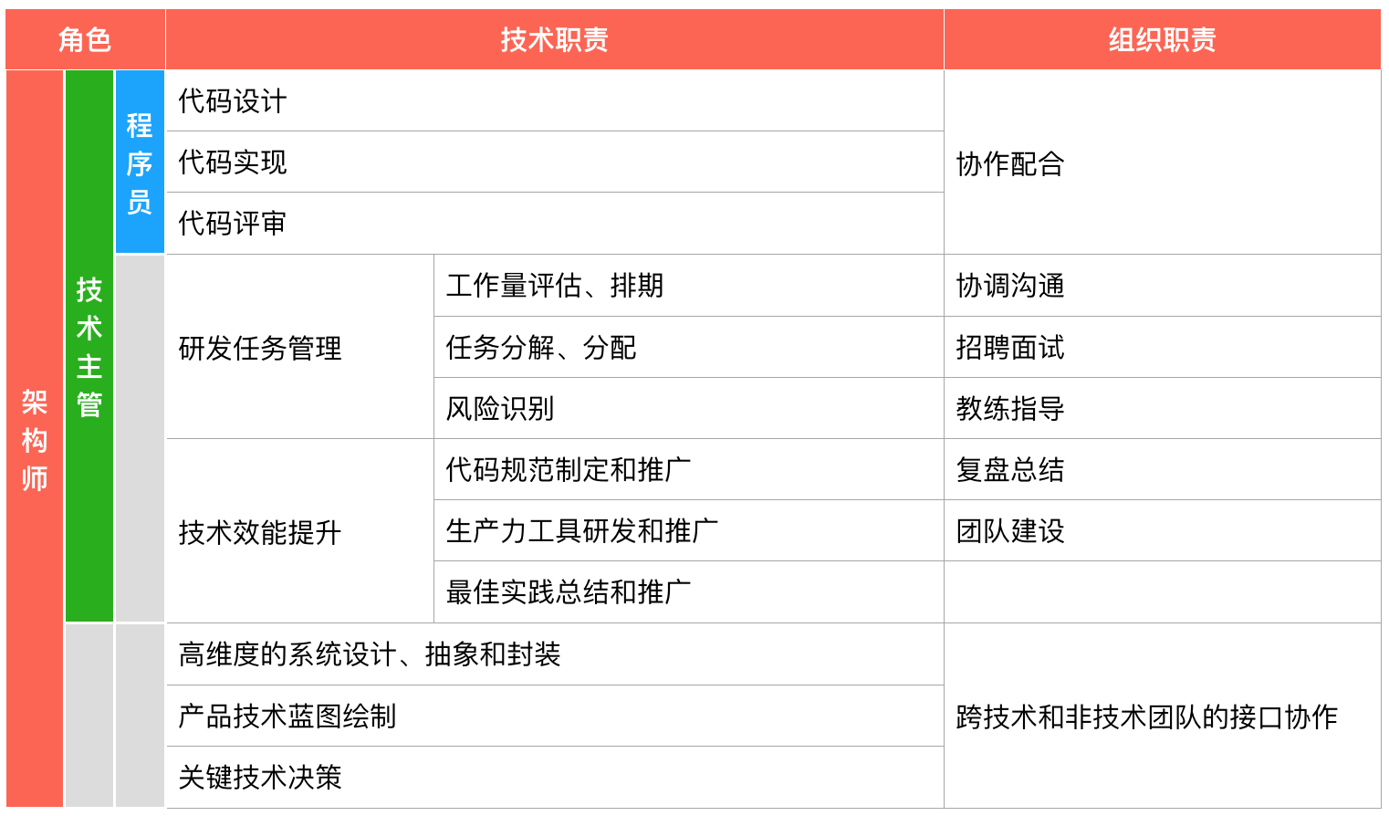 程序员、技术主管和架构师的职责表