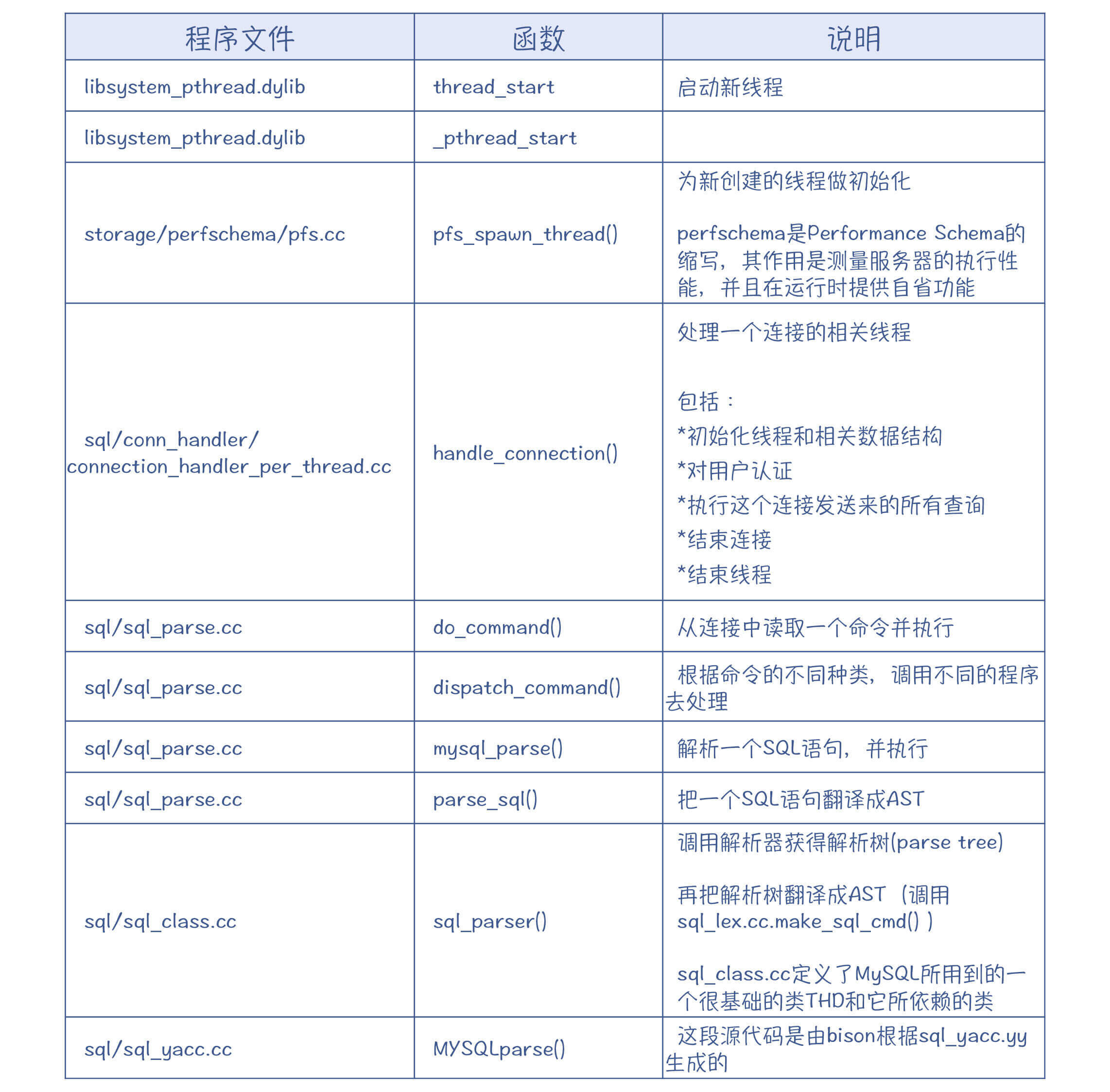 图2:MySQL执行SQL语句时的部分重要程序入口