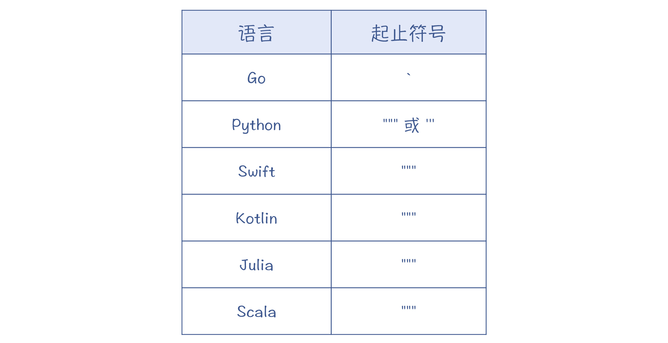 现在,很多的编程语言都可以支持多行的字符串字面量,比如: