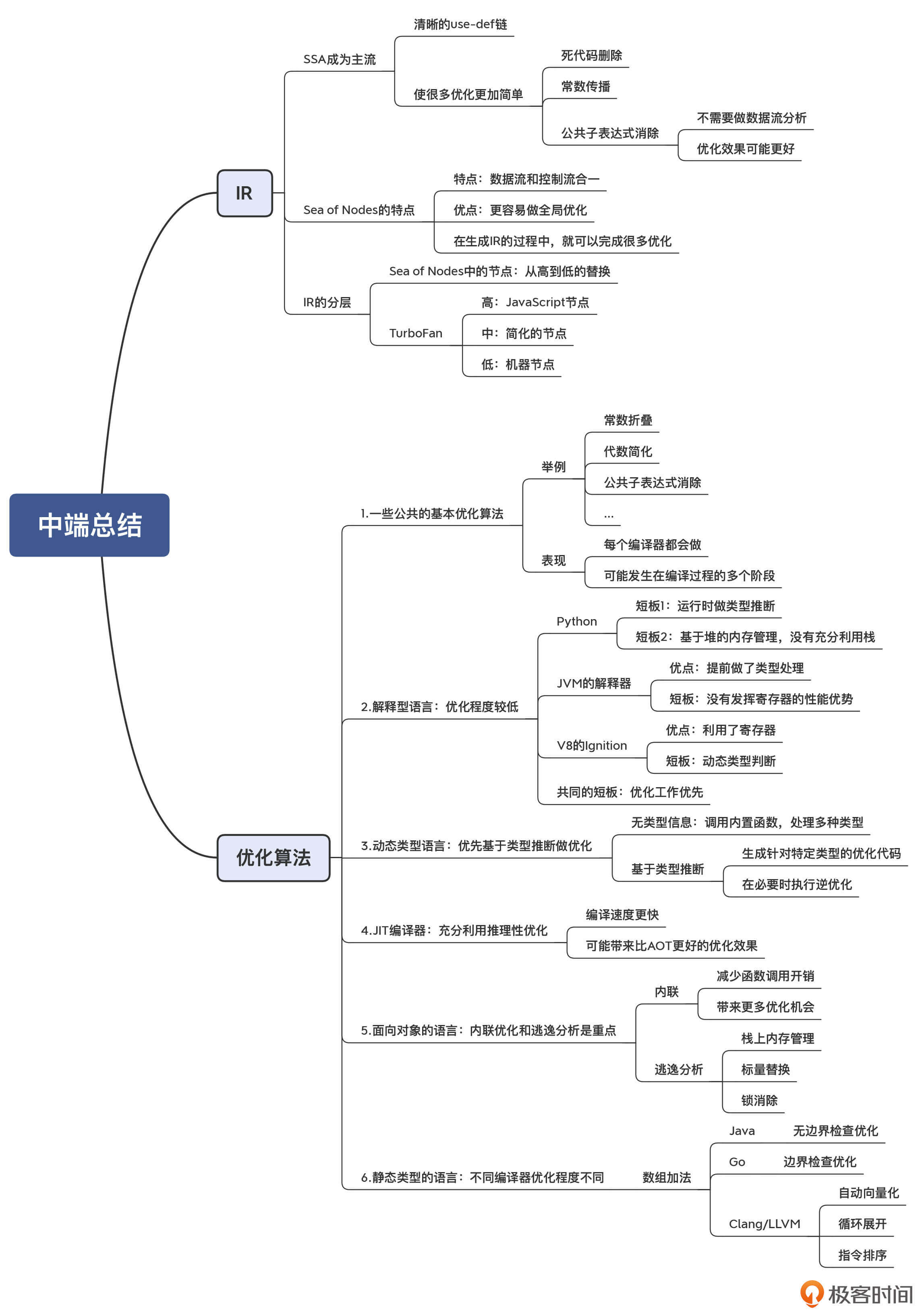 通过今天的总结,你能够对中端的两大主题IR和优化,形成更加深入的理解,从而更有利于你熟练运用编译技术。