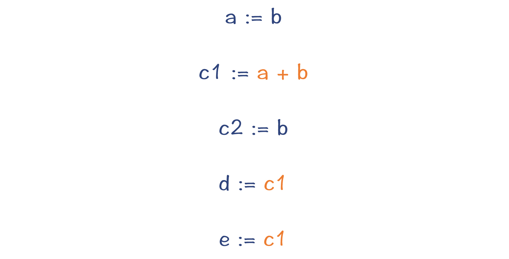 在后面,当替换公共子表达式的时候,我们可以把“e:=a+b”替换成“e:=d”,这样就可以少做一次计算,实现了优化的目标。