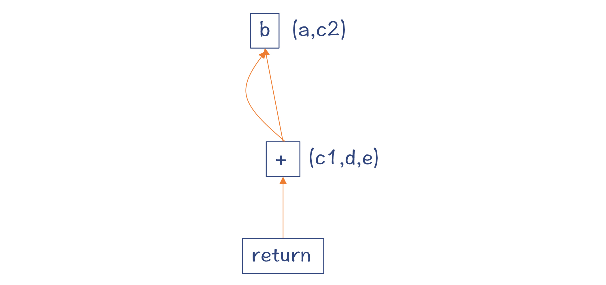 第3步,对于c=a+b,生成一个加法节点,从而形成一个新的值。