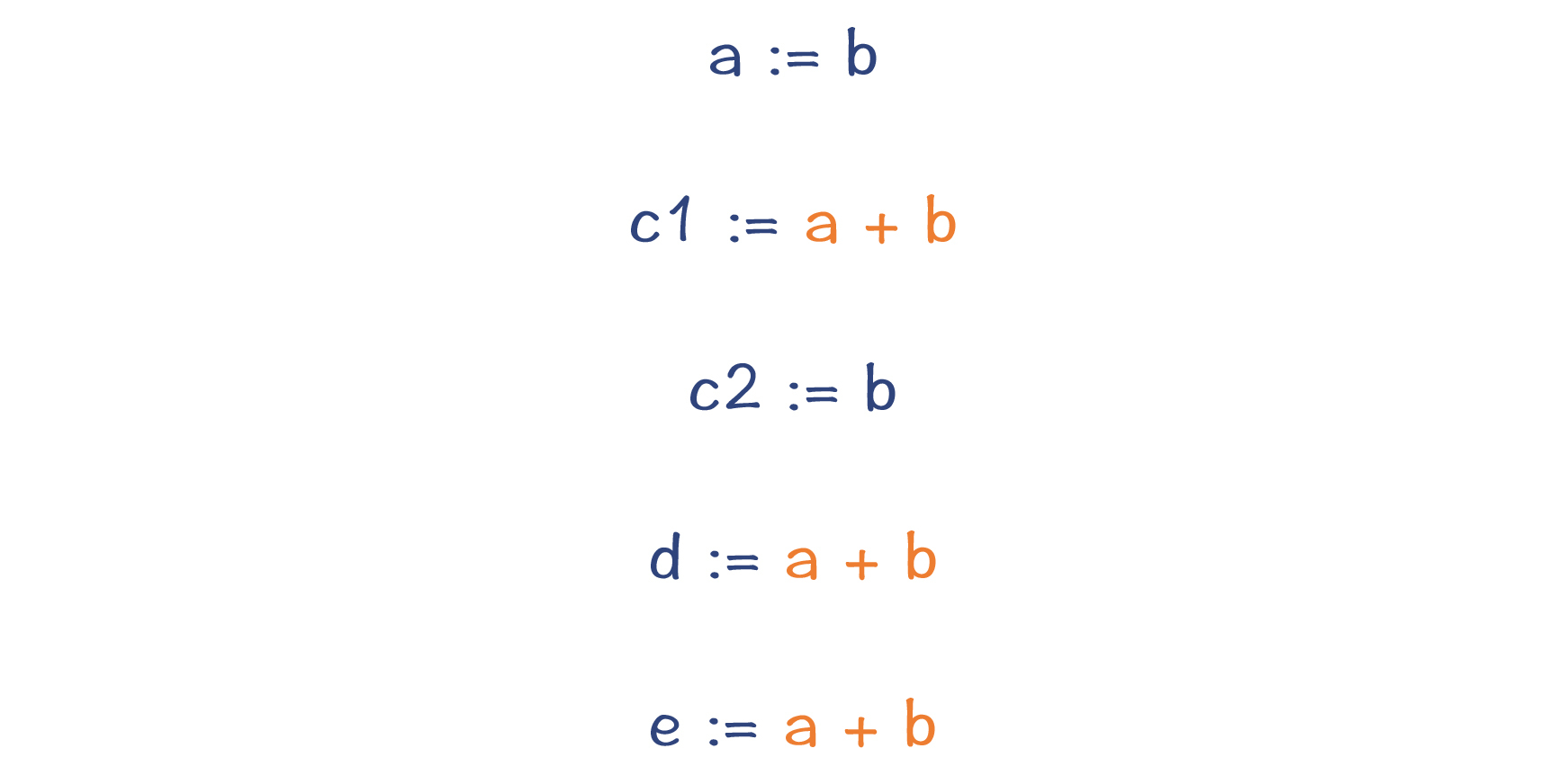 为什么叫做可用表达式呢?因为变量可能被二次赋值,就像图中的变量c那样。在二次赋值以后,之前的表达式“c:=a+b”就不可用了。