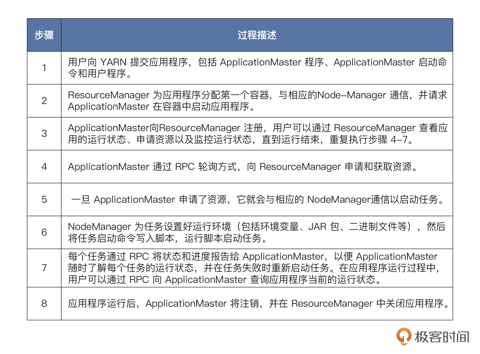 到YARN运行主要是包括后面表格里的八个步骤。-